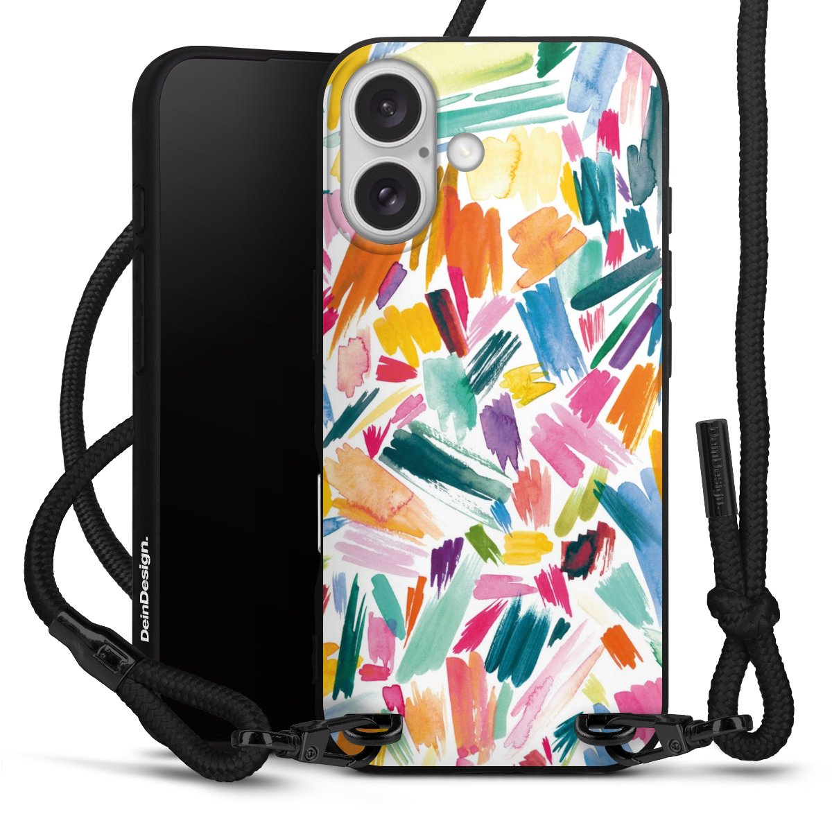 We use the solid direct print process for this phone case, which is why the print area only covers the back and the edge remains unprinted. The case to wear around your neck can be ordered unprinted, fully printed, or partially printed. For your design, either choose one of our exclusive shop motifs or get creative and create your own design, for example with photos and overlays. Design your own personal trend accessory and make an individual statement on the streets!
