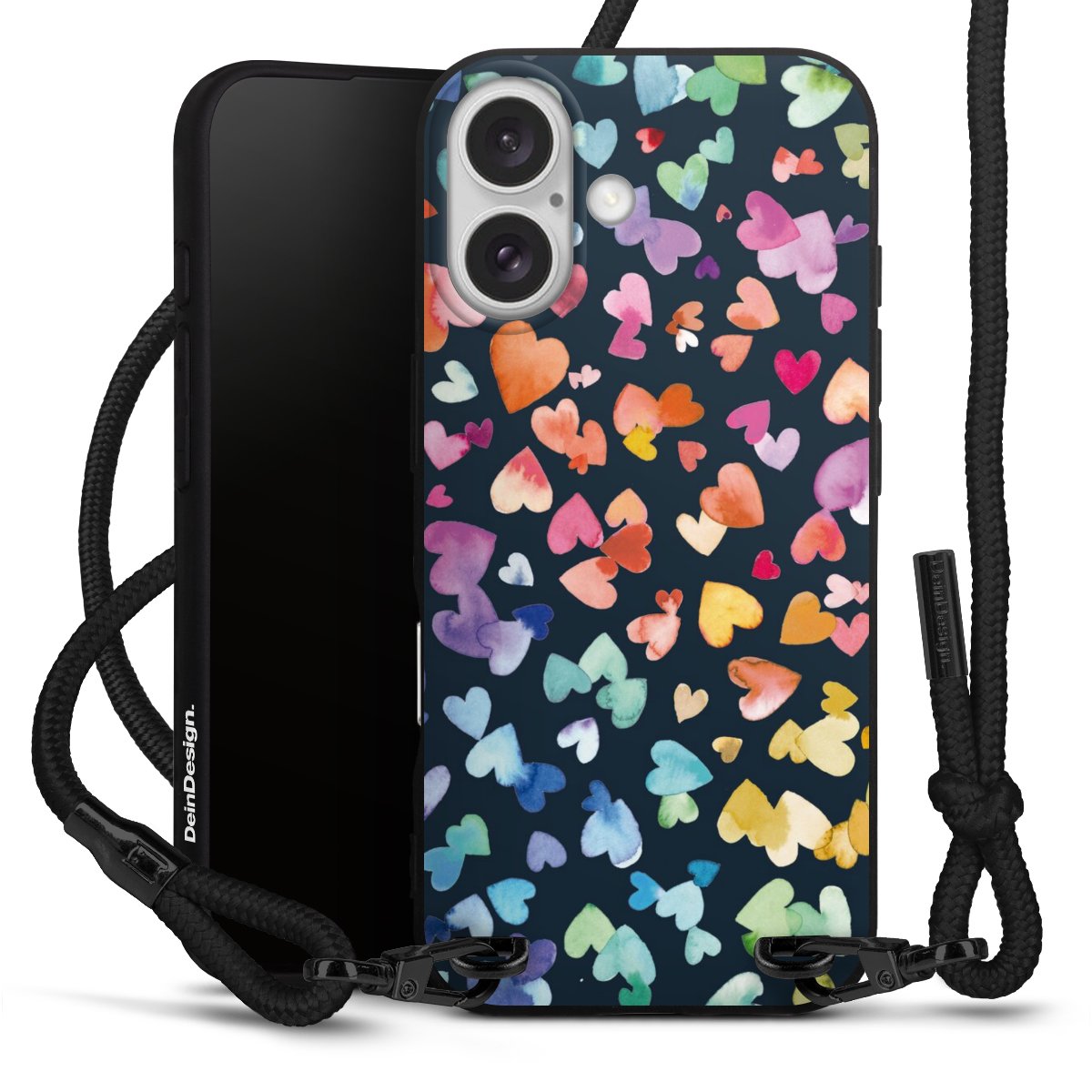 We use the solid direct print process for this phone case, which is why the print area only covers the back and the edge remains unprinted. The case to wear around your neck can be ordered unprinted, fully printed, or partially printed. For your design, either choose one of our exclusive shop motifs or get creative and create your own design, for example with photos and overlays. Design your own personal trend accessory and make an individual statement on the streets!