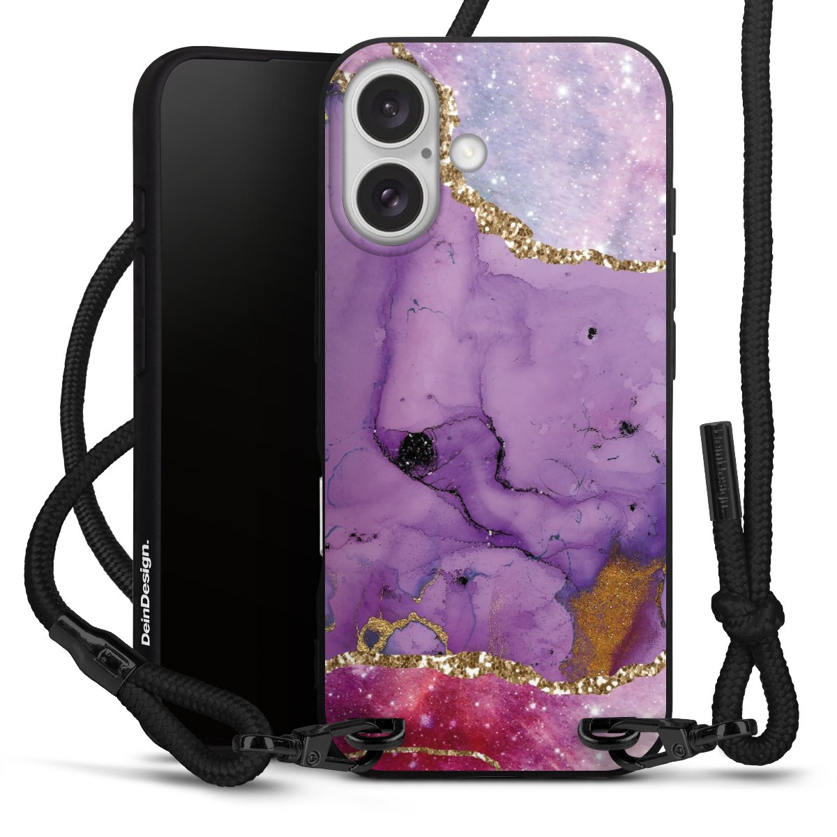 We use the solid direct print process for this phone case, which is why the print area only covers the back and the edge remains unprinted. The case to wear around your neck can be ordered unprinted, fully printed, or partially printed. For your design, either choose one of our exclusive shop motifs or get creative and create your own design, for example with photos and overlays. Design your own personal trend accessory and make an individual statement on the streets!