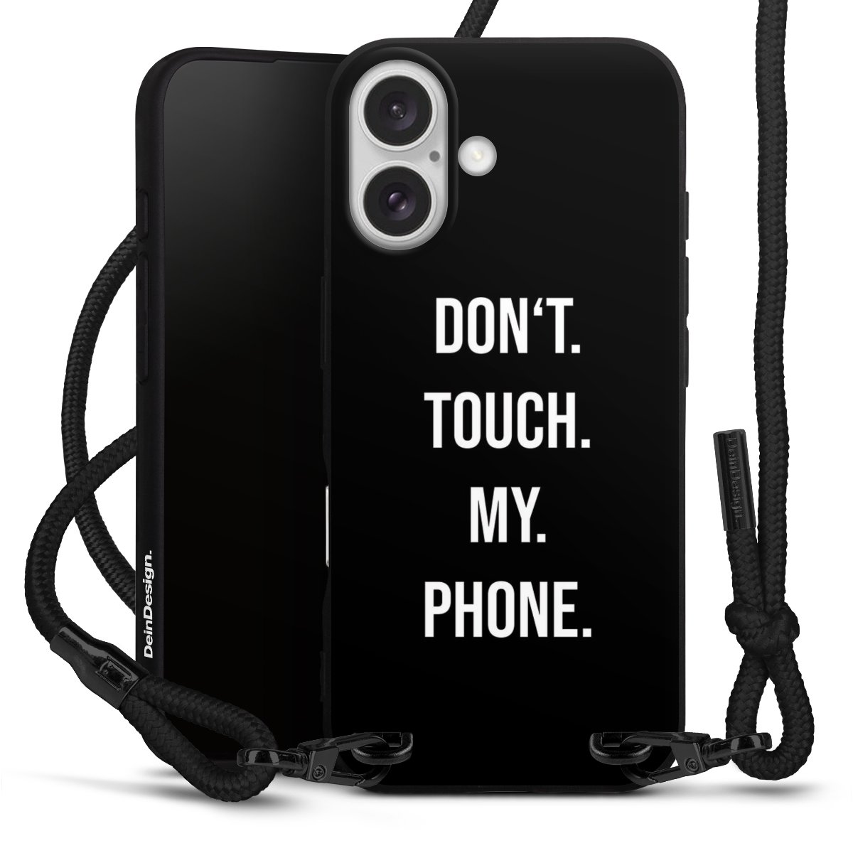 Pure Black: Phone case, fabric strap and metal details in stylish matt black.