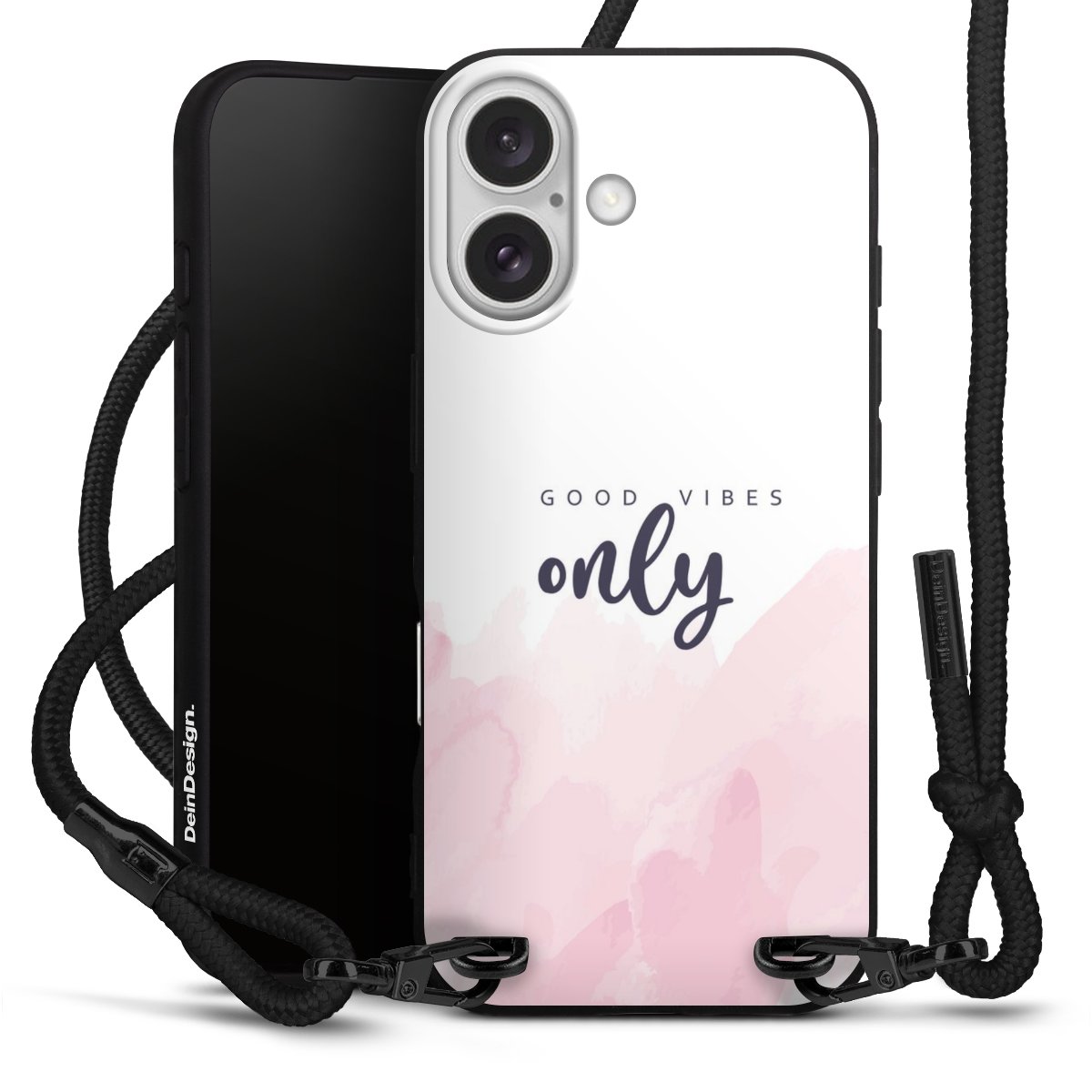 We use the solid direct print process for this phone case, which is why the print area only covers the back and the edge remains unprinted. The case to wear around your neck can be ordered unprinted, fully printed, or partially printed. For your design, either choose one of our exclusive shop motifs or get creative and create your own design, for example with photos and overlays. Design your own personal trend accessory and make an individual statement on the streets!