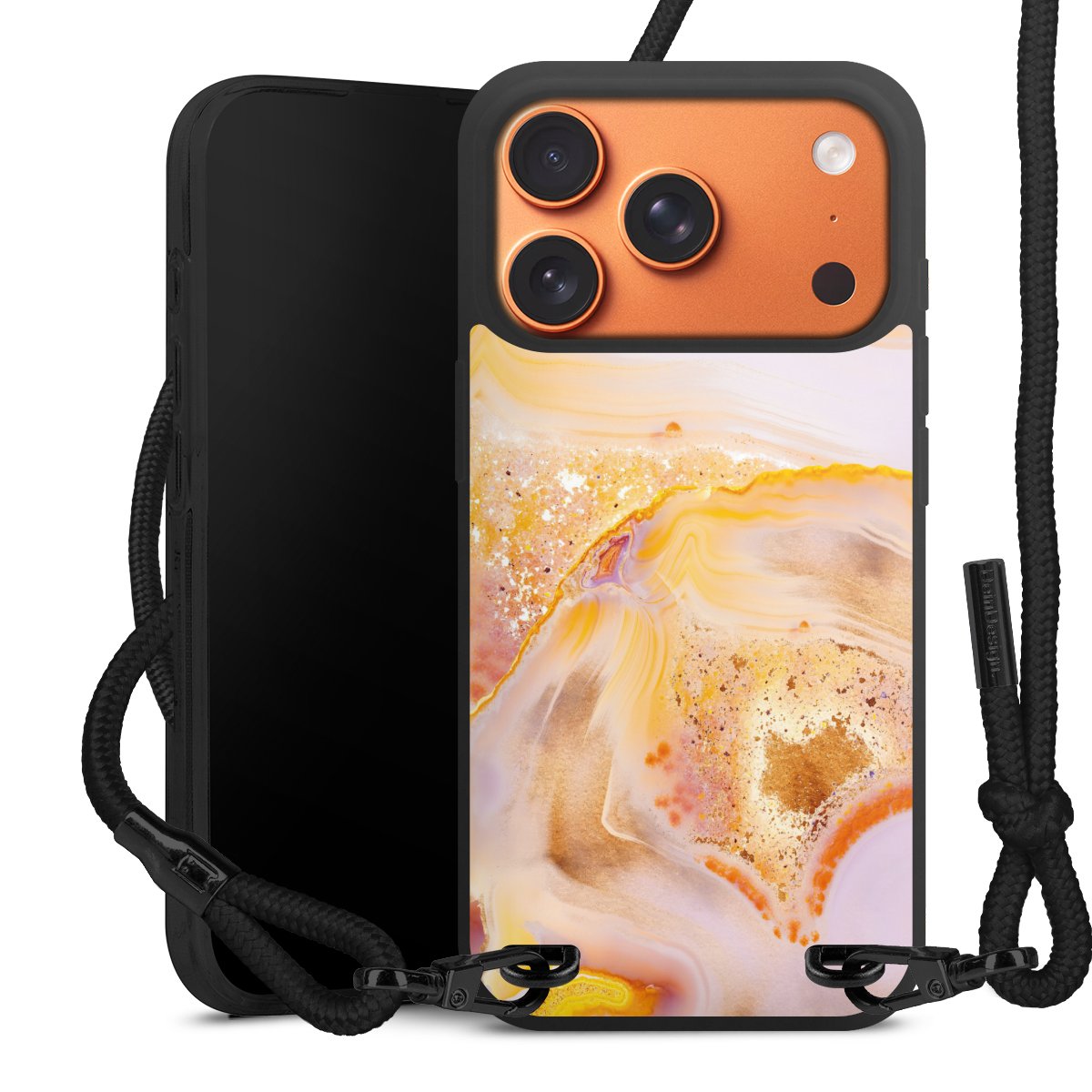 We use the solid direct print process for this phone case, which is why the print area only covers the back and the edge remains unprinted. The case to wear around your neck can be ordered unprinted, fully printed, or partially printed. For your design, either choose one of our exclusive shop motifs or get creative and create your own design, for example with photos and overlays. Design your own personal trend accessory and make an individual statement on the streets!