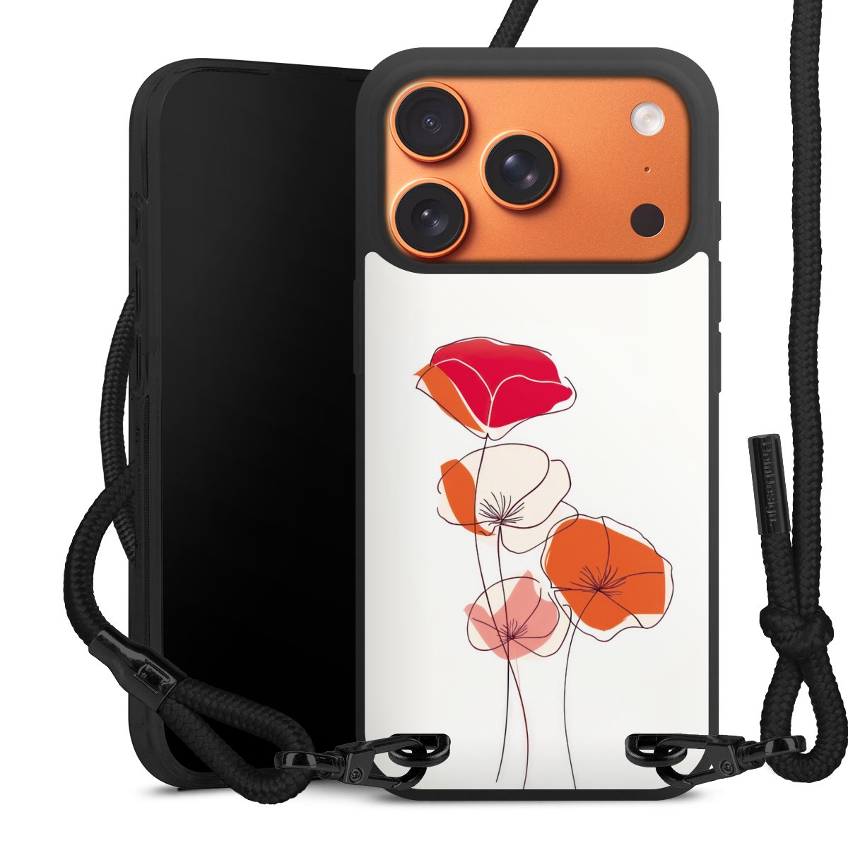 We use the solid direct print process for this phone case, which is why the print area only covers the back and the edge remains unprinted. The case to wear around your neck can be ordered unprinted, fully printed, or partially printed. For your design, either choose one of our exclusive shop motifs or get creative and create your own design, for example with photos and overlays. Design your own personal trend accessory and make an individual statement on the streets!