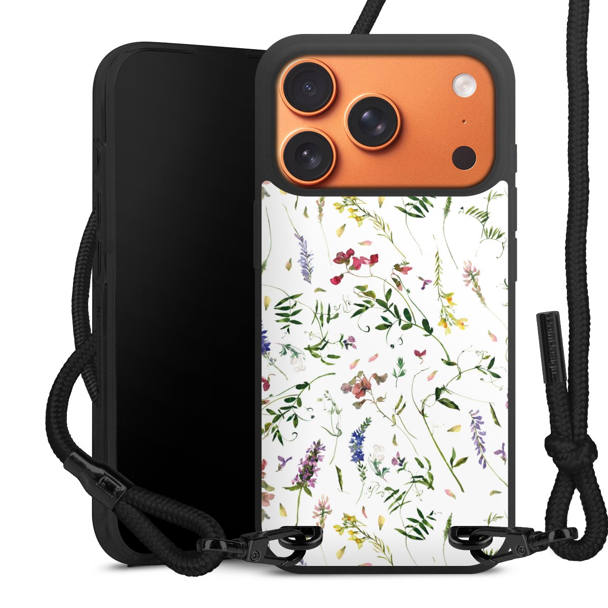 We use the solid direct print process for this phone case, which is why the print area only covers the back and the edge remains unprinted. The case to wear around your neck can be ordered unprinted, fully printed, or partially printed. For your design, either choose one of our exclusive shop motifs or get creative and create your own design, for example with photos and overlays. Design your own personal trend accessory and make an individual statement on the streets!