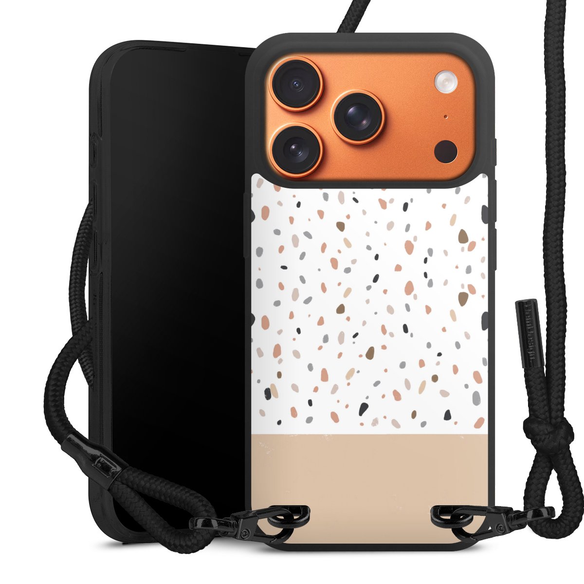 We use the solid direct print process for this phone case, which is why the print area only covers the back and the edge remains unprinted. The case to wear around your neck can be ordered unprinted, fully printed, or partially printed. For your design, either choose one of our exclusive shop motifs or get creative and create your own design, for example with photos and overlays. Design your own personal trend accessory and make an individual statement on the streets!