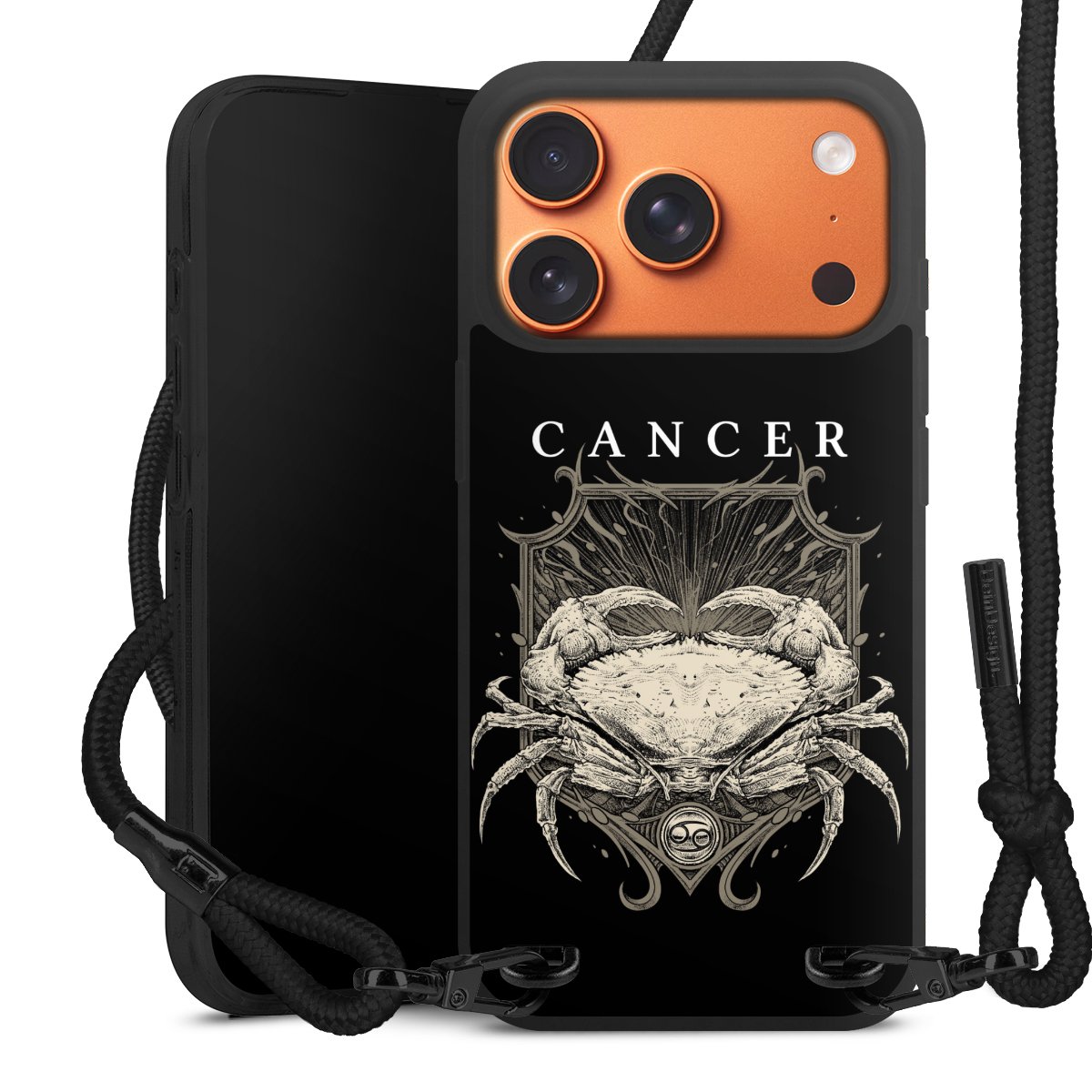 We use the solid direct print process for this phone case, which is why the print area only covers the back and the edge remains unprinted. The case to wear around your neck can be ordered unprinted, fully printed, or partially printed. For your design, either choose one of our exclusive shop motifs or get creative and create your own design, for example with photos and overlays. Design your own personal trend accessory and make an individual statement on the streets!