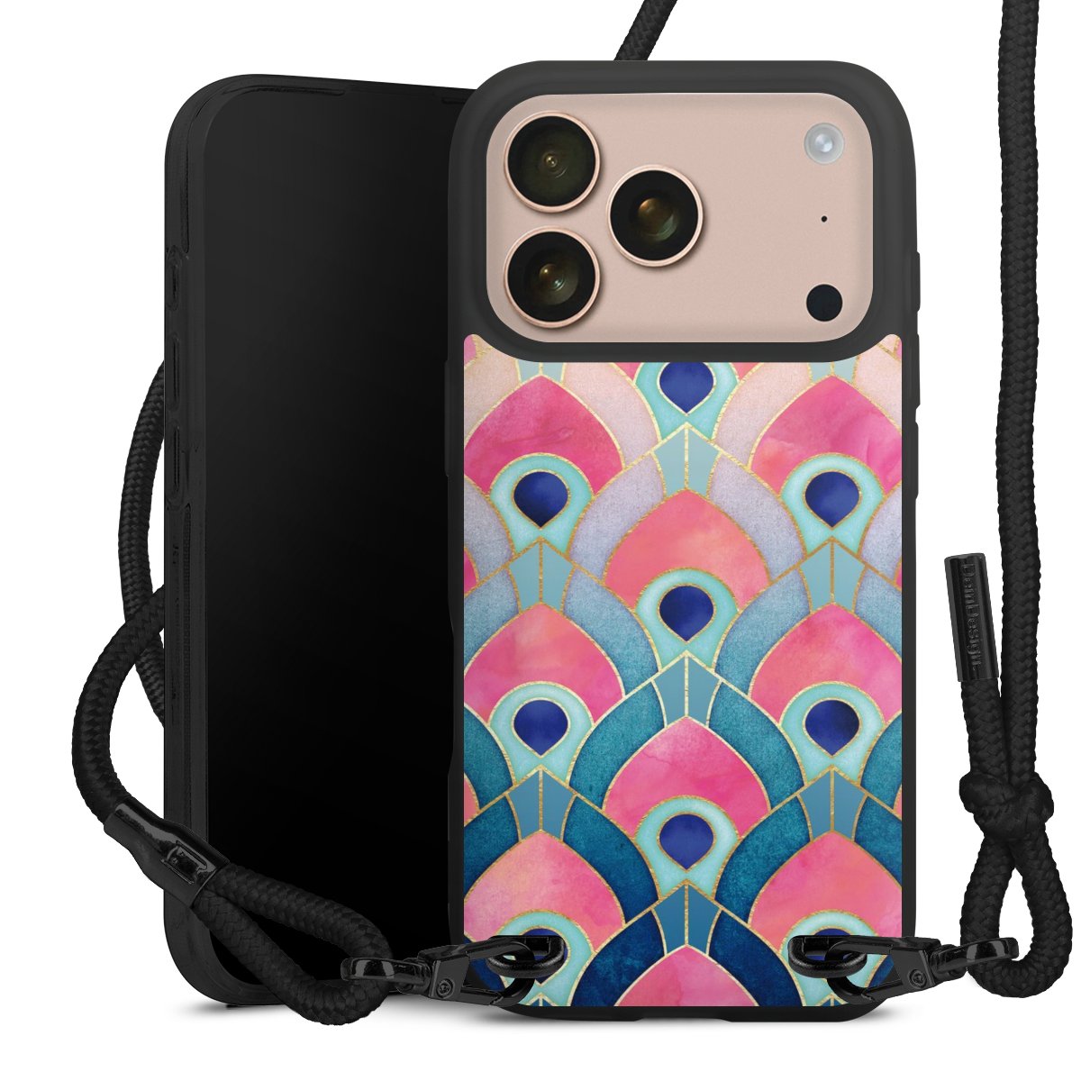 We use the solid direct print process for this phone case, which is why the print area only covers the back and the edge remains unprinted. The case to wear around your neck can be ordered unprinted, fully printed, or partially printed. For your design, either choose one of our exclusive shop motifs or get creative and create your own design, for example with photos and overlays. Design your own personal trend accessory and make an individual statement on the streets!