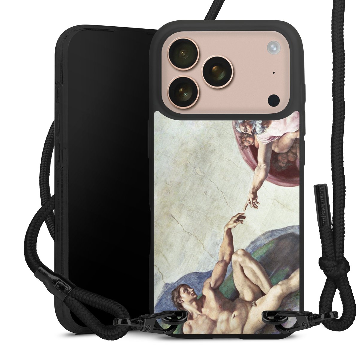 We use the solid direct print process for this phone case, which is why the print area only covers the back and the edge remains unprinted. The case to wear around your neck can be ordered unprinted, fully printed, or partially printed. For your design, either choose one of our exclusive shop motifs or get creative and create your own design, for example with photos and overlays. Design your own personal trend accessory and make an individual statement on the streets!