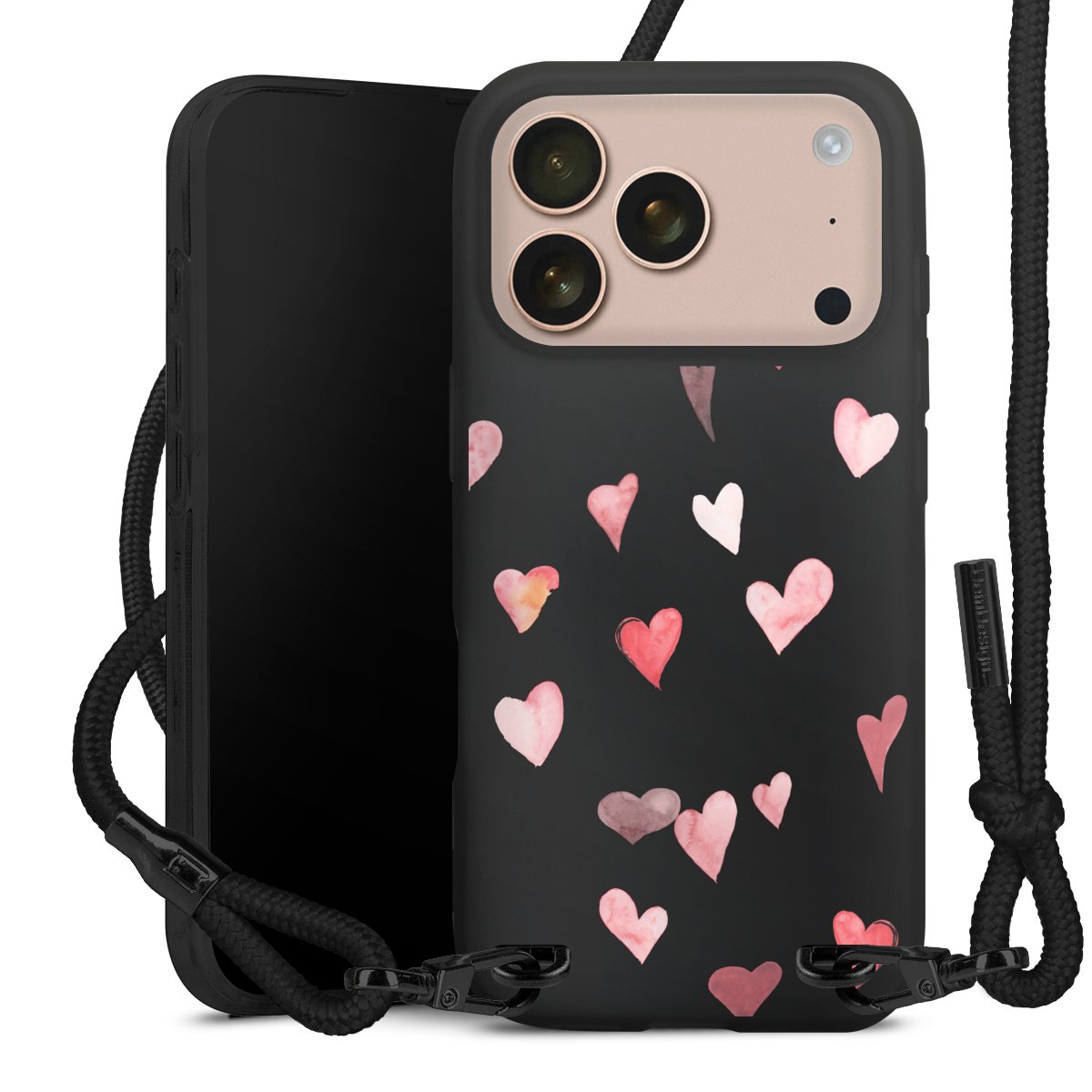 Pure Black: Phone case, fabric strap and metal details in stylish matt black.