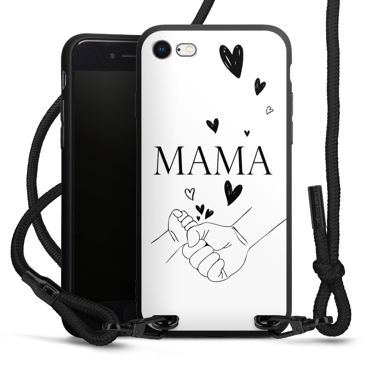 The matt black silicone case is made of flexible TPU (thermoplastic polyurethane) and offers robust protection. The durable, unbreakable material makes the cover flexible and dimensionally stable at the same time. The matte surface makes your design stand out more and is less susceptible to fingerprints and dirt. The stylish trend accessory fits comfortably in the hand and is perfectly complemented by the fabric (polyester) mobile phone strap. The braided fabric strap is approx. 1.70 metres long with a diameter of approx. 0.5 cm. Due to the special knotting technique, the length of the strap can be adjusted by simply pulling it, so that you can adapt it individually to your wishes. The practical case to wear around your neck is available with the fabric strap in black. As a little icing on the cake, we have provided the strap with a chic metal fastener in matt black. The strap is securely fastened to the case with loops made of high-quality genuine leather and press studs. The ends of the fabric strap are covered with metallic end caps and thus protected from fraying.