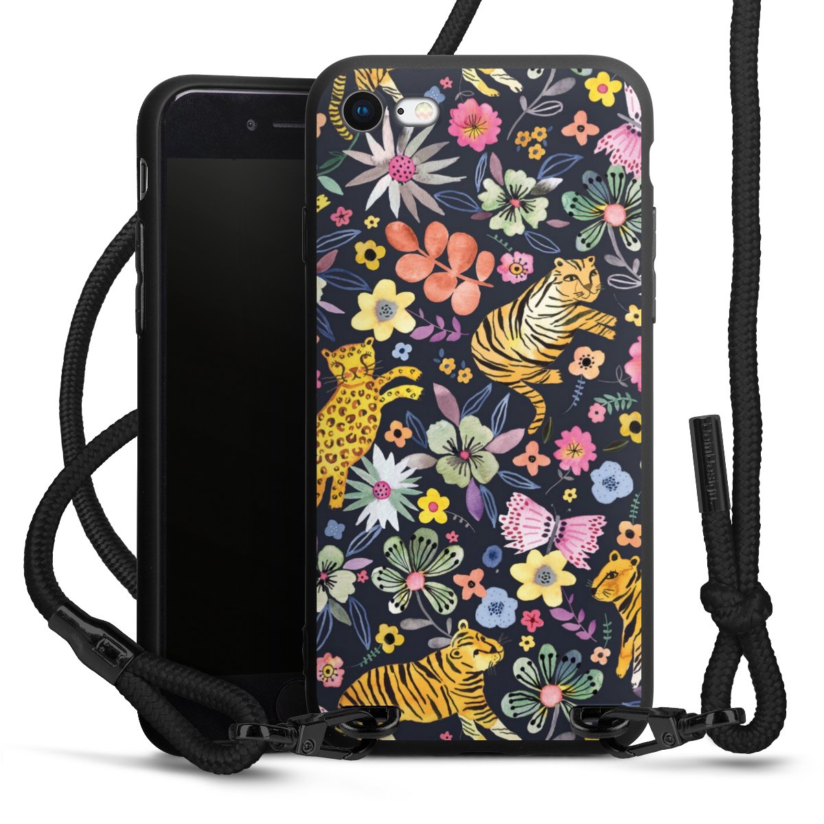 We use the solid direct print process for this phone case, which is why the print area only covers the back and the edge remains unprinted. The case to wear around your neck can be ordered unprinted, fully printed, or partially printed. For your design, either choose one of our exclusive shop motifs or get creative and create your own design, for example with photos and overlays. Design your own personal trend accessory and make an individual statement on the streets!
