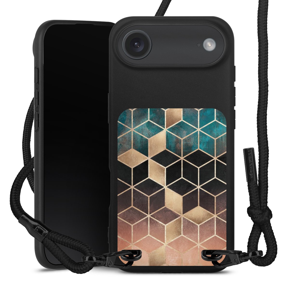 We use the solid direct print process for this phone case, which is why the print area only covers the back and the edge remains unprinted. The case to wear around your neck can be ordered unprinted, fully printed, or partially printed. For your design, either choose one of our exclusive shop motifs or get creative and create your own design, for example with photos and overlays. Design your own personal trend accessory and make an individual statement on the streets!