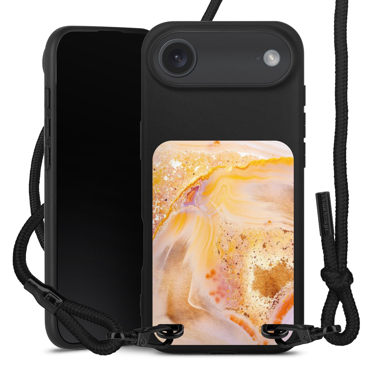 We use the solid direct print process for this phone case, which is why the print area only covers the back and the edge remains unprinted. The case to wear around your neck can be ordered unprinted, fully printed, or partially printed. For your design, either choose one of our exclusive shop motifs or get creative and create your own design, for example with photos and overlays. Design your own personal trend accessory and make an individual statement on the streets!