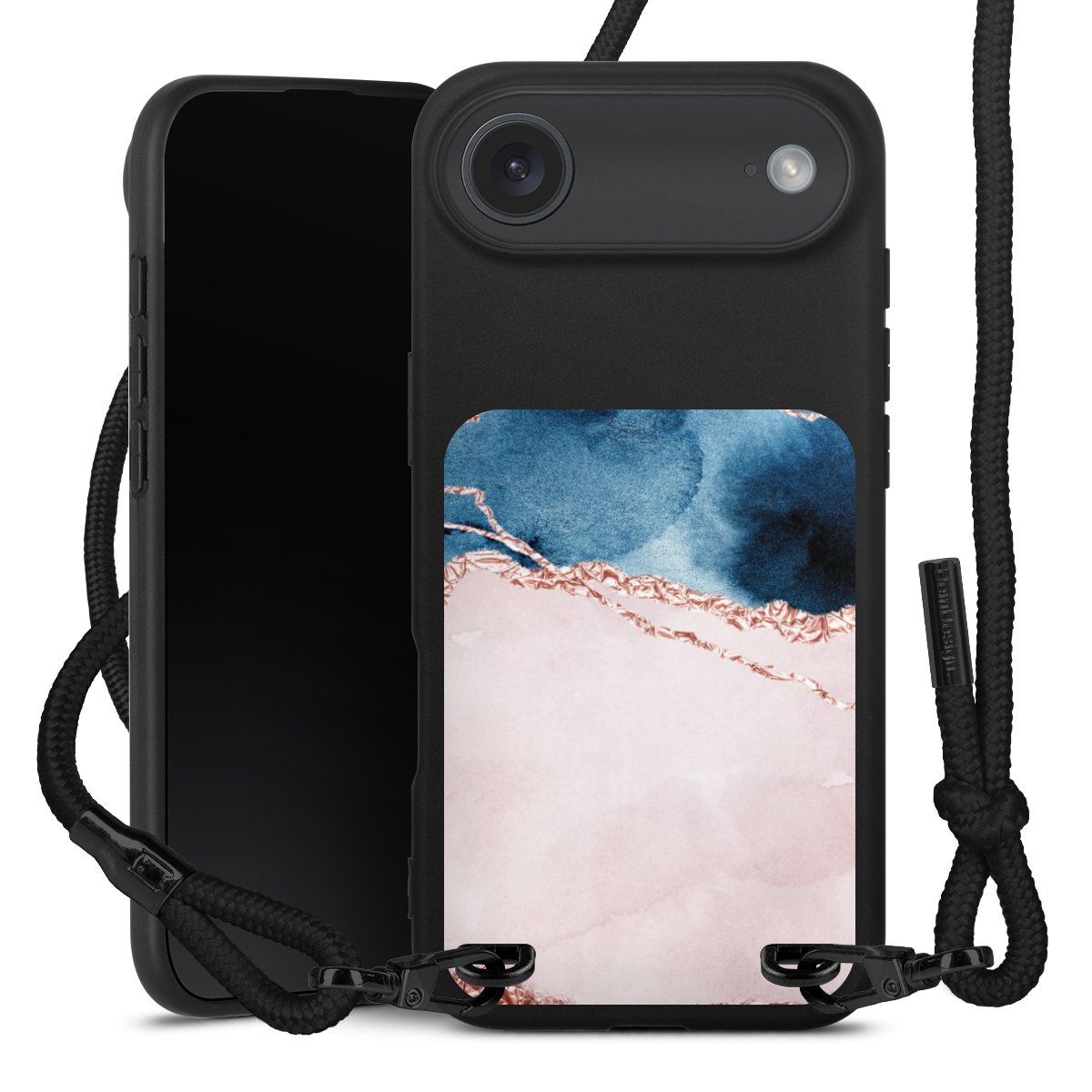 We use the solid direct print process for this phone case, which is why the print area only covers the back and the edge remains unprinted. The case to wear around your neck can be ordered unprinted, fully printed, or partially printed. For your design, either choose one of our exclusive shop motifs or get creative and create your own design, for example with photos and overlays. Design your own personal trend accessory and make an individual statement on the streets!
