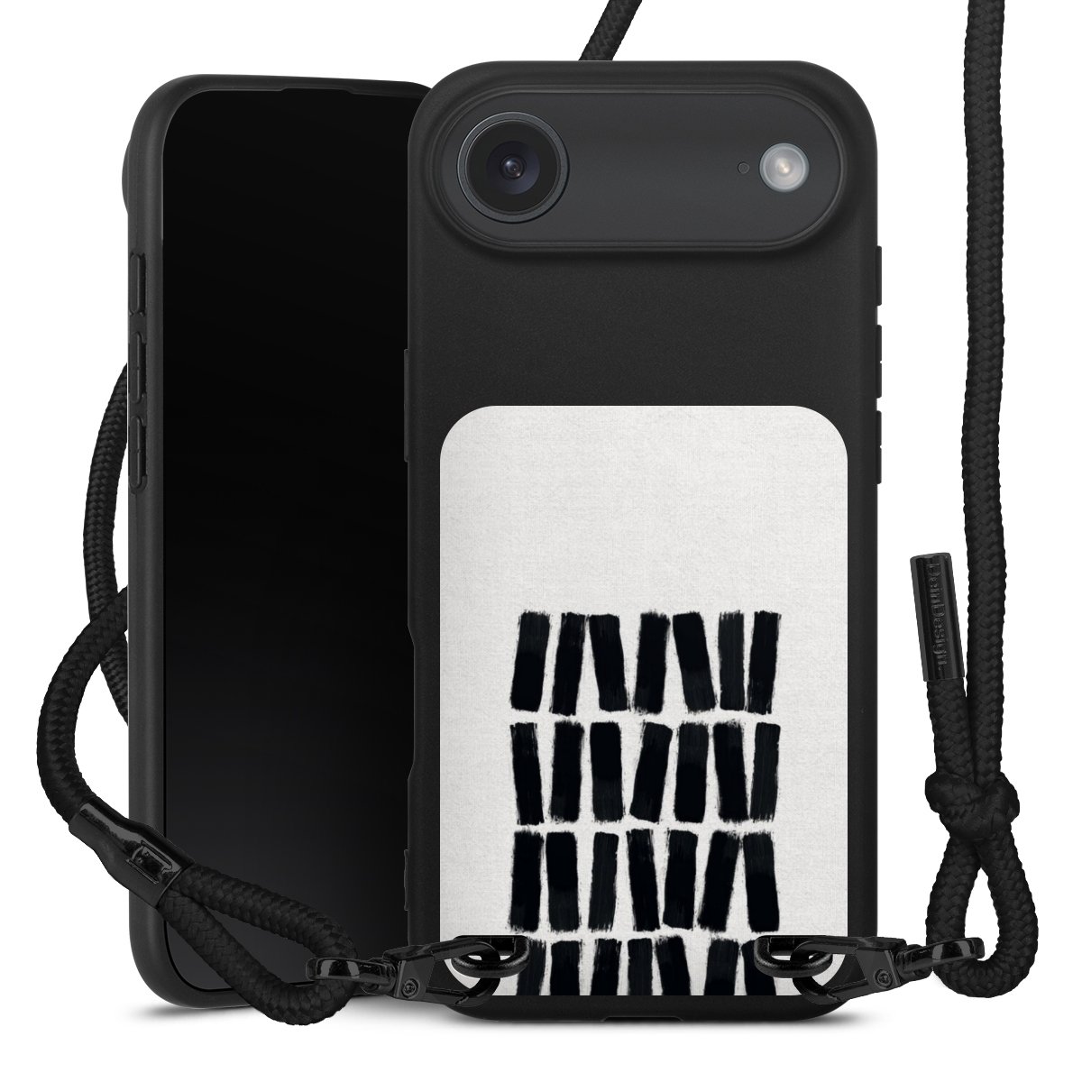 Pure Black: Phone case, fabric strap and metal details in stylish matt black.