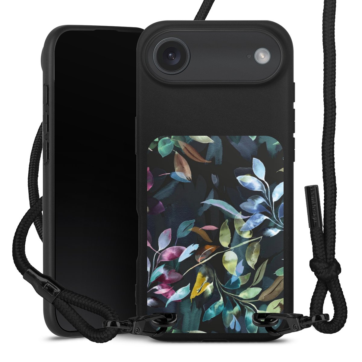 The matt black silicone case is made of flexible TPU (thermoplastic polyurethane) and offers robust protection. The durable, unbreakable material makes the cover flexible and dimensionally stable at the same time. The matte surface makes your design stand out more and is less susceptible to fingerprints and dirt. The stylish trend accessory fits comfortably in the hand and is perfectly complemented by the fabric (polyester) mobile phone strap. The braided fabric strap is approx. 1.70 metres long with a diameter of approx. 0.5 cm. Due to the special knotting technique, the length of the strap can be adjusted by simply pulling it, so that you can adapt it individually to your wishes. The practical case to wear around your neck is available with the fabric strap in black. As a little icing on the cake, we have provided the strap with a chic metal fastener in matt black. The strap is securely fastened to the case with loops made of high-quality genuine leather and press studs. The ends of the fabric strap are covered with metallic end caps and thus protected from fraying.