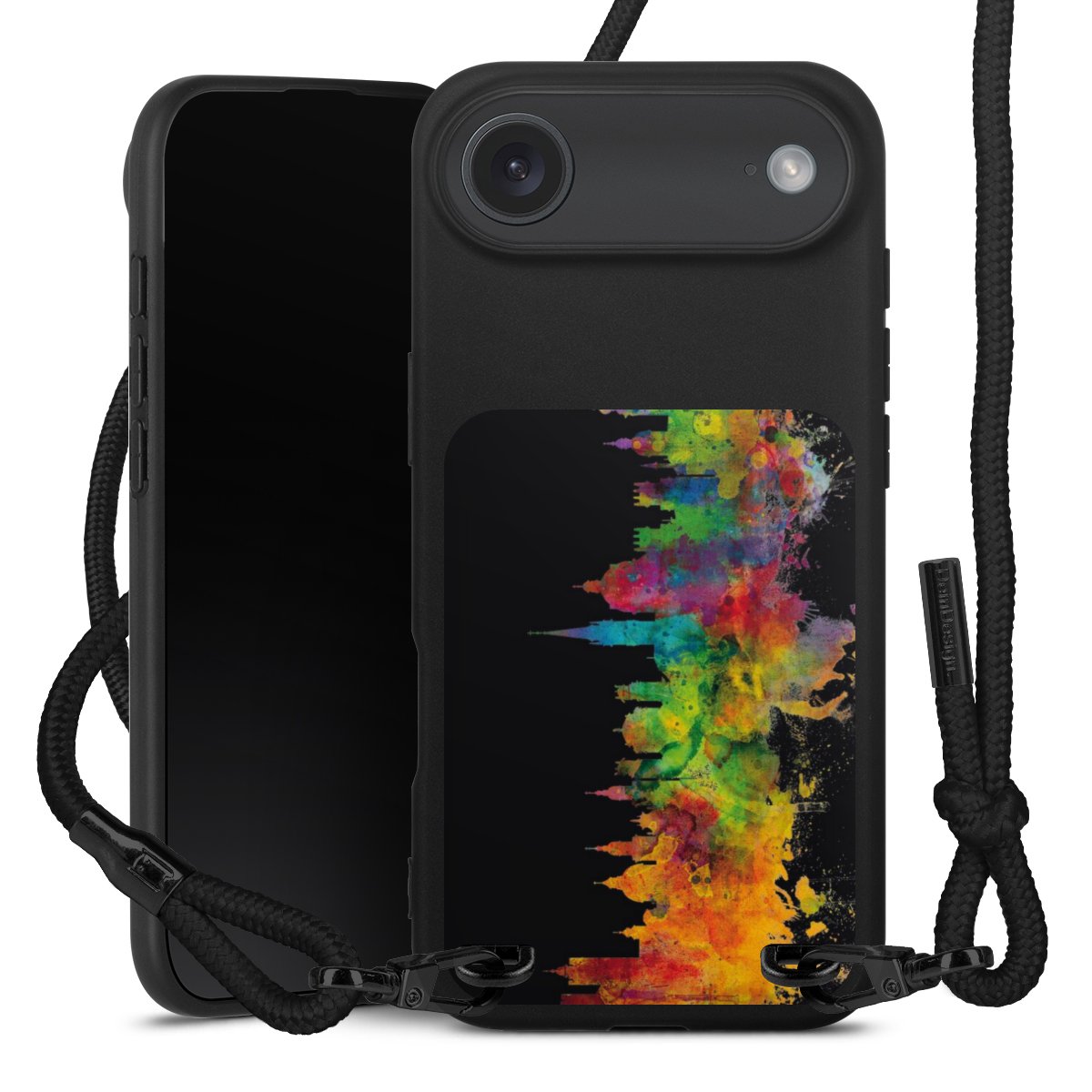 We use the solid direct print process for this phone case, which is why the print area only covers the back and the edge remains unprinted. The case to wear around your neck can be ordered unprinted, fully printed, or partially printed. For your design, either choose one of our exclusive shop motifs or get creative and create your own design, for example with photos and overlays. Design your own personal trend accessory and make an individual statement on the streets!