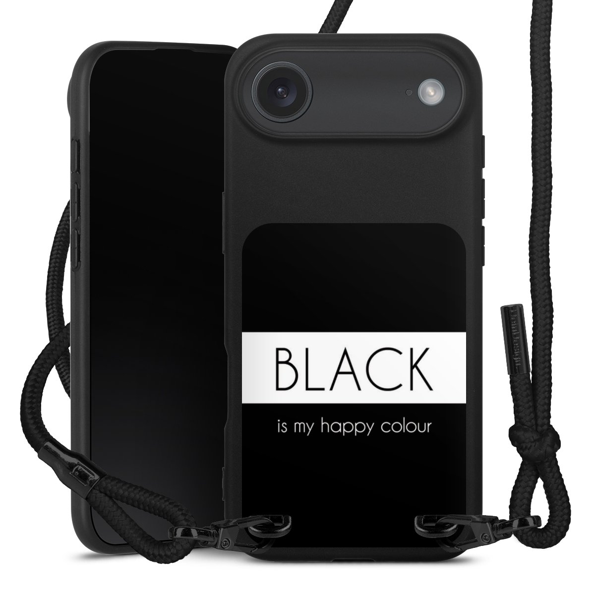 Pure Black: Phone case, fabric strap and metal details in stylish matt black.