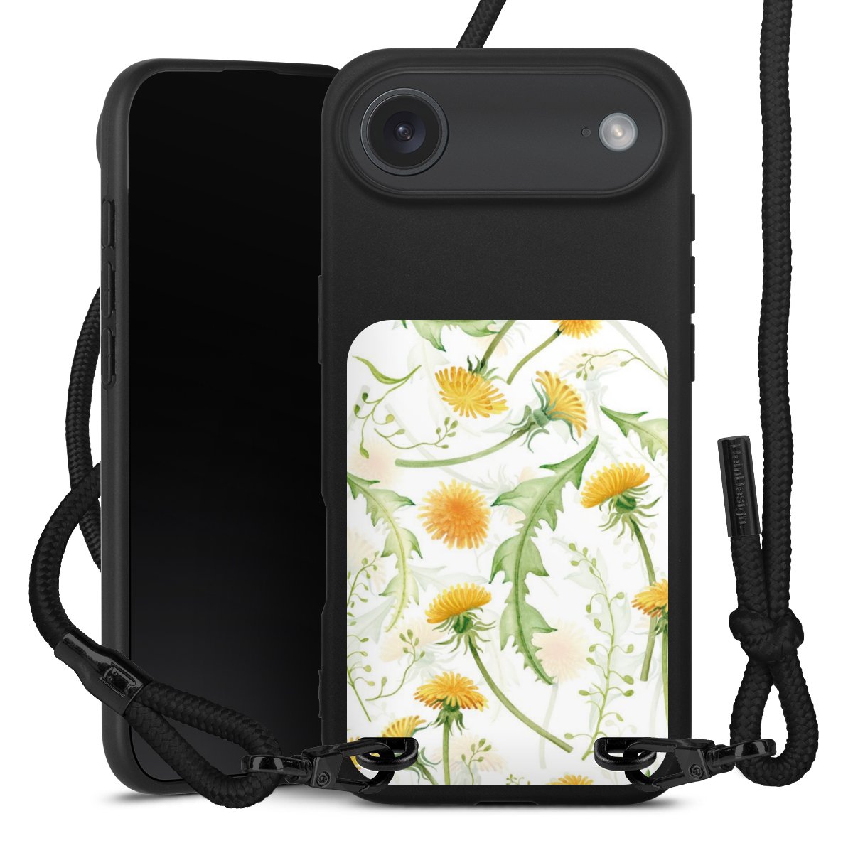 Pure Black: Phone case, fabric strap and metal details in stylish matt black.