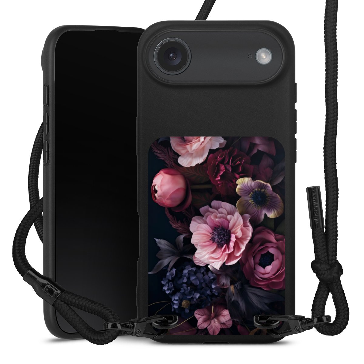 The matt black silicone case is made of flexible TPU (thermoplastic polyurethane) and offers robust protection. The durable, unbreakable material makes the cover flexible and dimensionally stable at the same time. The matte surface makes your design stand out more and is less susceptible to fingerprints and dirt. The stylish trend accessory fits comfortably in the hand and is perfectly complemented by the fabric (polyester) mobile phone strap. The braided fabric strap is approx. 1.70 metres long with a diameter of approx. 0.5 cm. Due to the special knotting technique, the length of the strap can be adjusted by simply pulling it, so that you can adapt it individually to your wishes. The practical case to wear around your neck is available with the fabric strap in black. As a little icing on the cake, we have provided the strap with a chic metal fastener in matt black. The strap is securely fastened to the case with loops made of high-quality genuine leather and press studs. The ends of the fabric strap are covered with metallic end caps and thus protected from fraying.