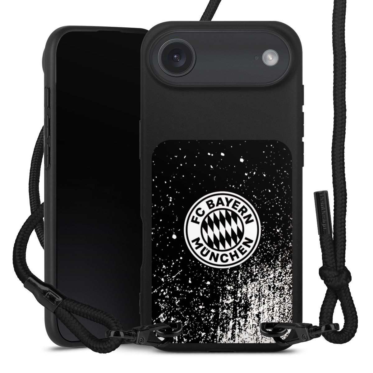 Pure Black: Phone case, fabric strap and metal details in stylish matt black.