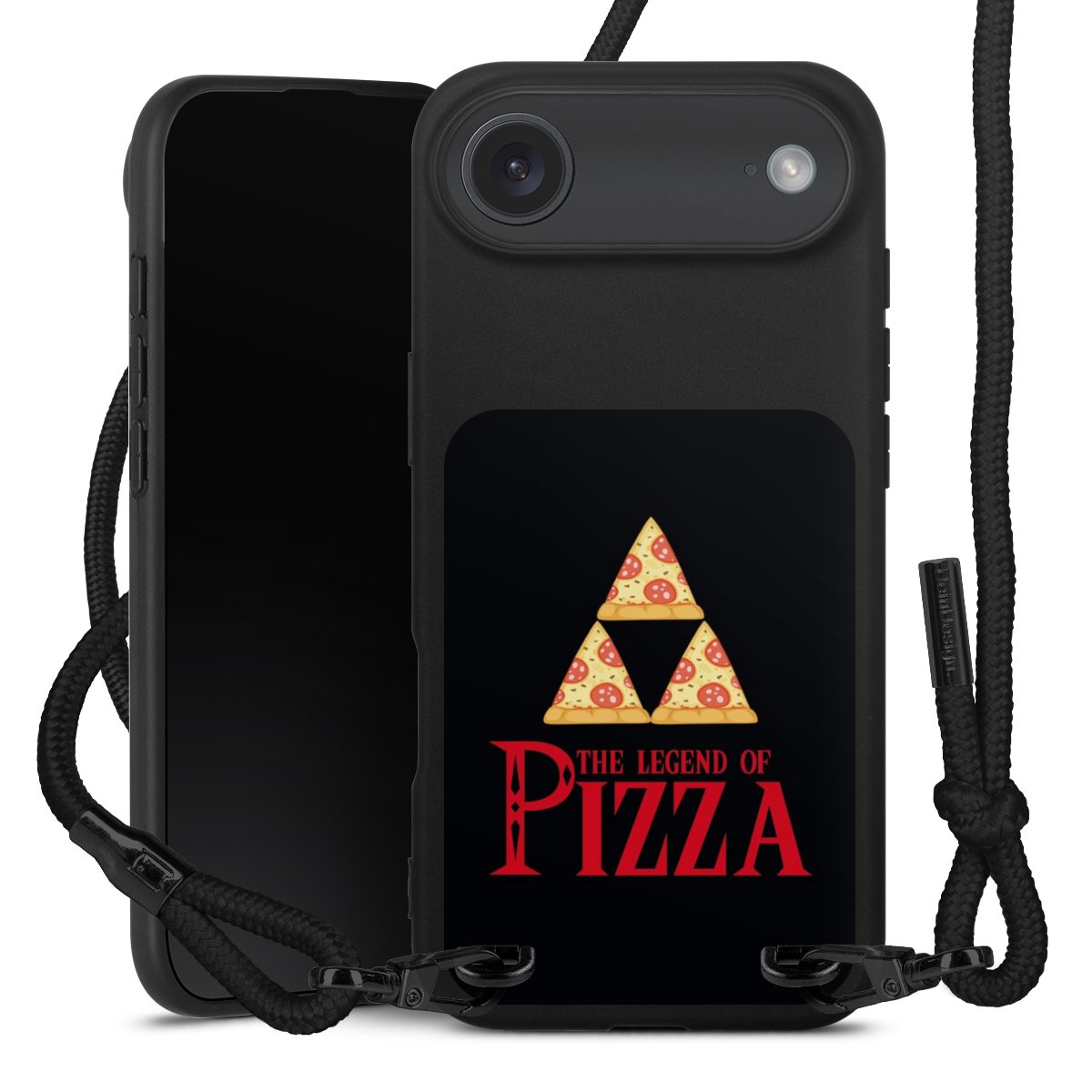 Pure Black: Phone case, fabric strap and metal details in stylish matt black.