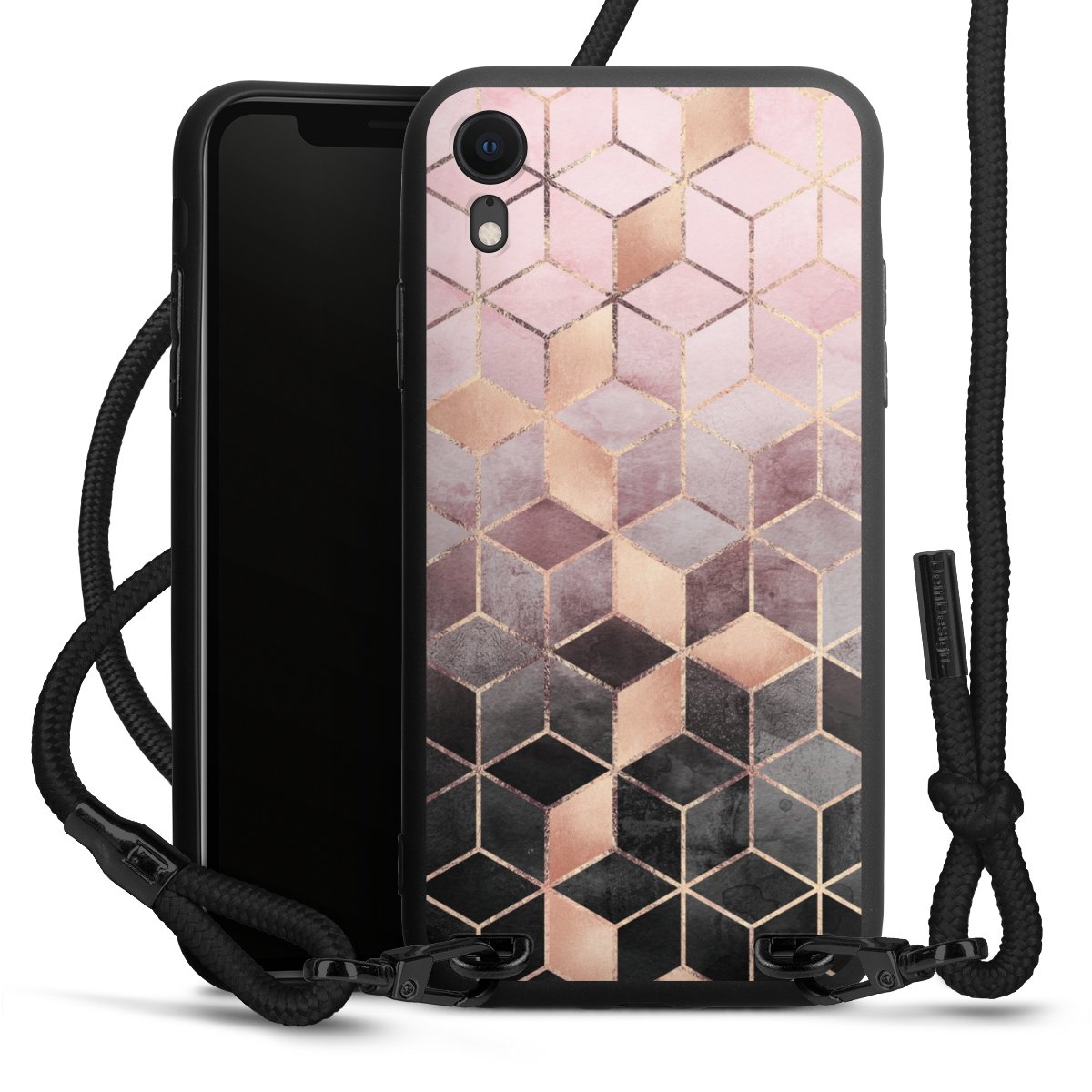 Pure Black: Phone case, fabric strap and metal details in stylish matt black.