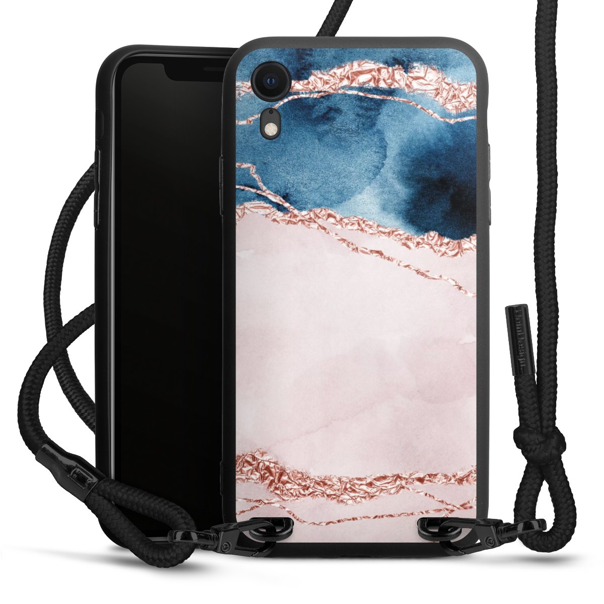 We use the solid direct print process for this phone case, which is why the print area only covers the back and the edge remains unprinted. The case to wear around your neck can be ordered unprinted, fully printed, or partially printed. For your design, either choose one of our exclusive shop motifs or get creative and create your own design, for example with photos and overlays. Design your own personal trend accessory and make an individual statement on the streets!