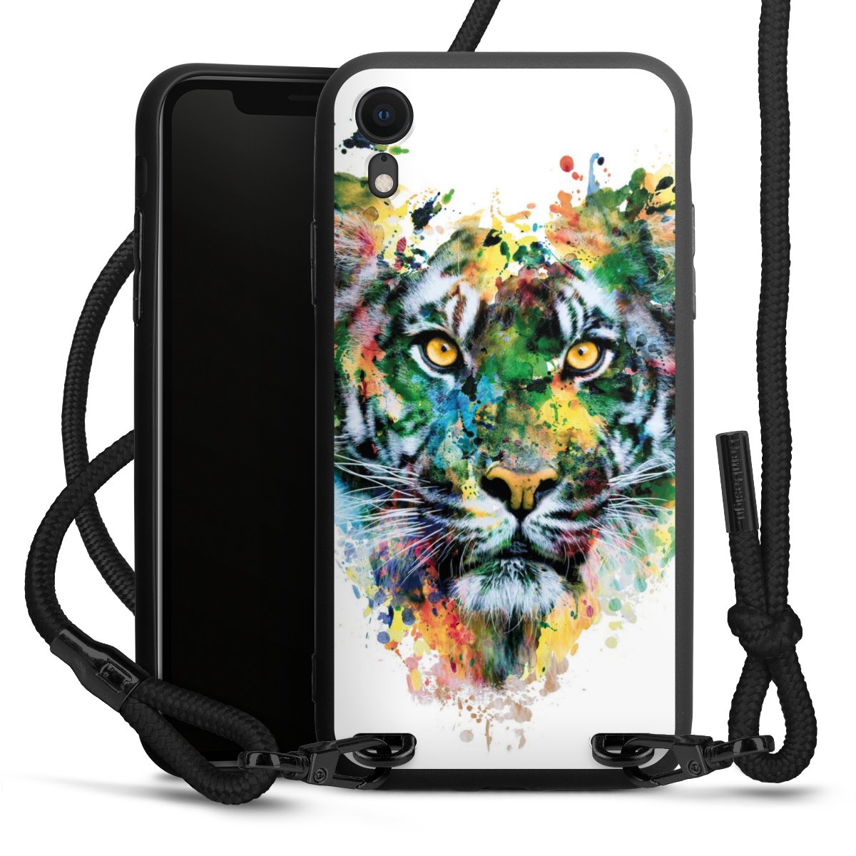 We use the solid direct print process for this phone case, which is why the print area only covers the back and the edge remains unprinted. The case to wear around your neck can be ordered unprinted, fully printed, or partially printed. For your design, either choose one of our exclusive shop motifs or get creative and create your own design, for example with photos and overlays. Design your own personal trend accessory and make an individual statement on the streets!