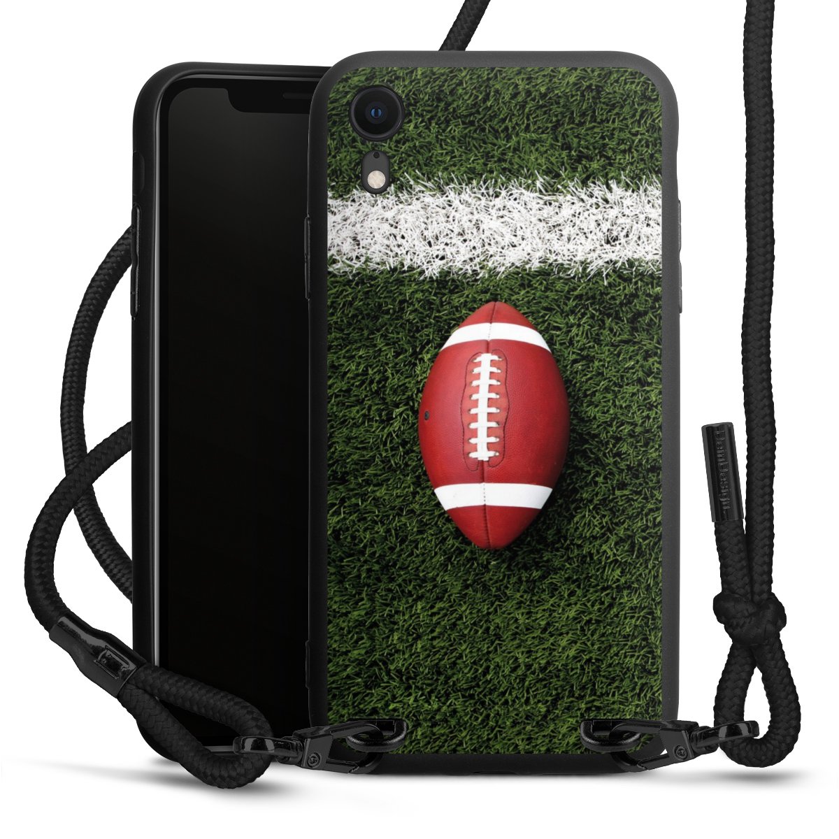 The matt black silicone case is made of flexible TPU (thermoplastic polyurethane) and offers robust protection. The durable, unbreakable material makes the cover flexible and dimensionally stable at the same time. The matte surface makes your design stand out more and is less susceptible to fingerprints and dirt. The stylish trend accessory fits comfortably in the hand and is perfectly complemented by the fabric (polyester) mobile phone strap. The braided fabric strap is approx. 1.70 metres long with a diameter of approx. 0.5 cm. Due to the special knotting technique, the length of the strap can be adjusted by simply pulling it, so that you can adapt it individually to your wishes. The practical case to wear around your neck is available with the fabric strap in black. As a little icing on the cake, we have provided the strap with a chic metal fastener in matt black. The strap is securely fastened to the case with loops made of high-quality genuine leather and press studs. The ends of the fabric strap are covered with metallic end caps and thus protected from fraying.