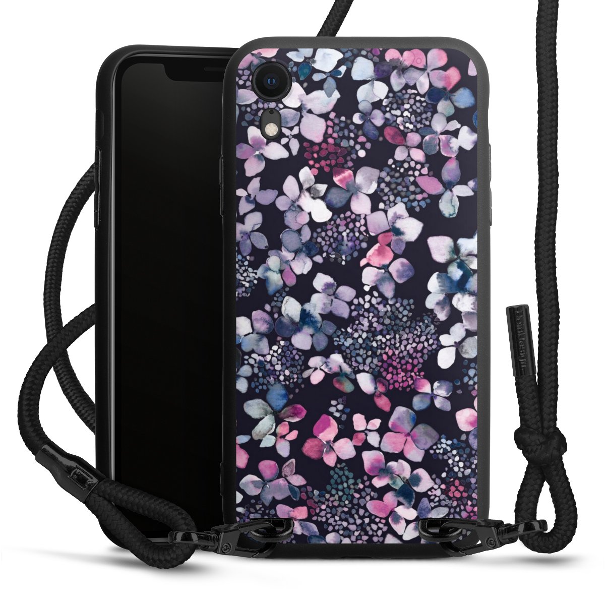 Pure Black: Phone case, fabric strap and metal details in stylish matt black.