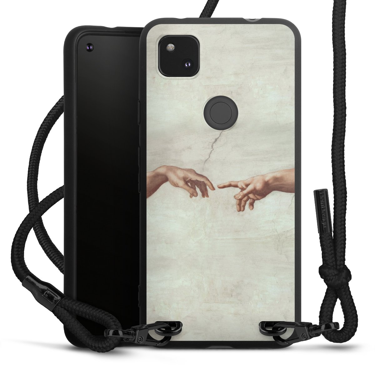 The matt black silicone case is made of flexible TPU (thermoplastic polyurethane) and offers robust protection. The durable, unbreakable material makes the cover flexible and dimensionally stable at the same time. The matte surface makes your design stand out more and is less susceptible to fingerprints and dirt. The stylish trend accessory fits comfortably in the hand and is perfectly complemented by the fabric (polyester) mobile phone strap. The braided fabric strap is approx. 1.70 metres long with a diameter of approx. 0.5 cm. Due to the special knotting technique, the length of the strap can be adjusted by simply pulling it, so that you can adapt it individually to your wishes. The practical case to wear around your neck is available with the fabric strap in black. As a little icing on the cake, we have provided the strap with a chic metal fastener in matt black. The strap is securely fastened to the case with loops made of high-quality genuine leather and press studs. The ends of the fabric strap are covered with metallic end caps and thus protected from fraying.