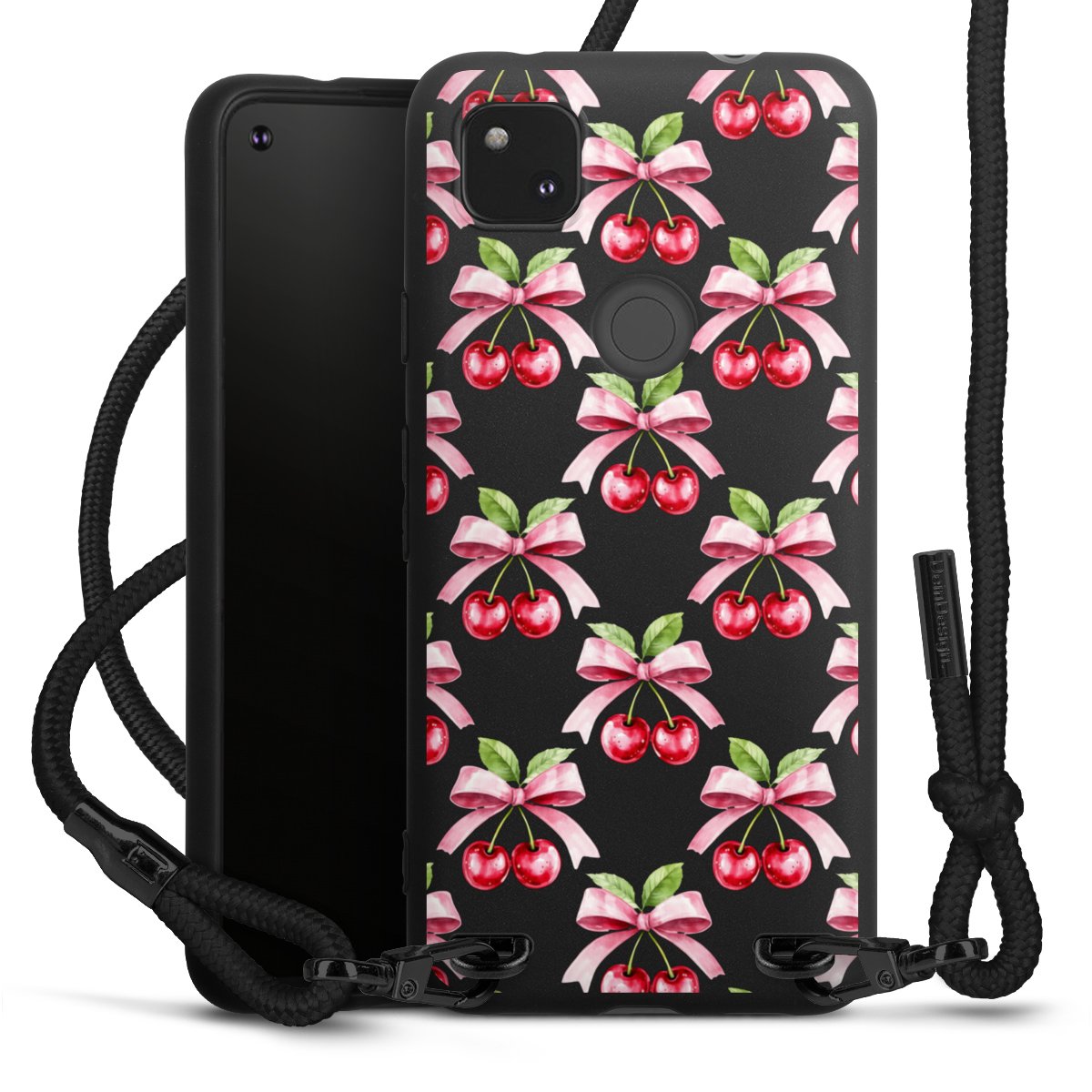 Pure Black: Phone case, fabric strap and metal details in stylish matt black.