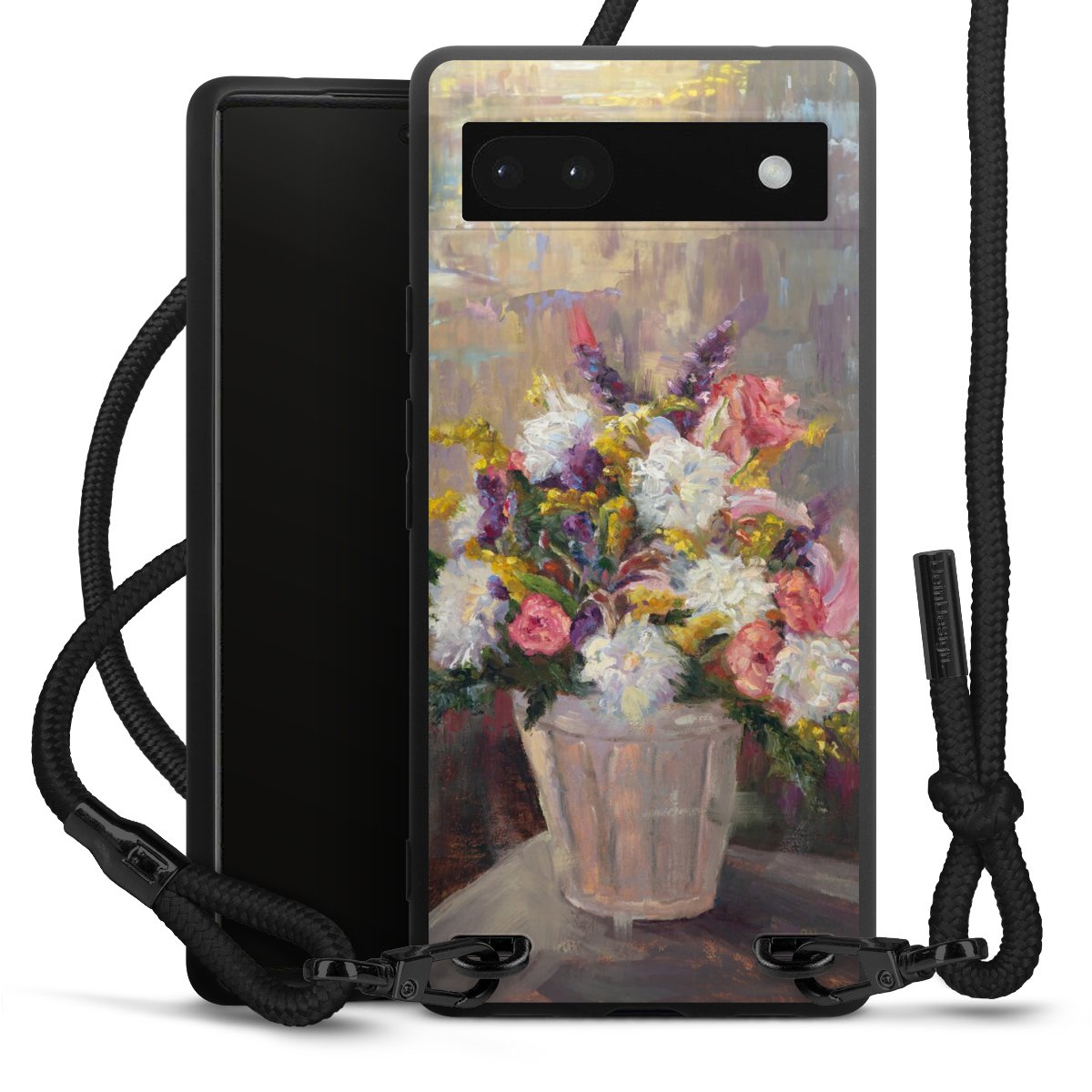 The matt black silicone case is made of flexible TPU (thermoplastic polyurethane) and offers robust protection. The durable, unbreakable material makes the cover flexible and dimensionally stable at the same time. The matte surface makes your design stand out more and is less susceptible to fingerprints and dirt. The stylish trend accessory fits comfortably in the hand and is perfectly complemented by the fabric (polyester) mobile phone strap. The braided fabric strap is approx. 1.70 metres long with a diameter of approx. 0.5 cm. Due to the special knotting technique, the length of the strap can be adjusted by simply pulling it, so that you can adapt it individually to your wishes. The practical case to wear around your neck is available with the fabric strap in black. As a little icing on the cake, we have provided the strap with a chic metal fastener in matt black. The strap is securely fastened to the case with loops made of high-quality genuine leather and press studs. The ends of the fabric strap are covered with metallic end caps and thus protected from fraying.