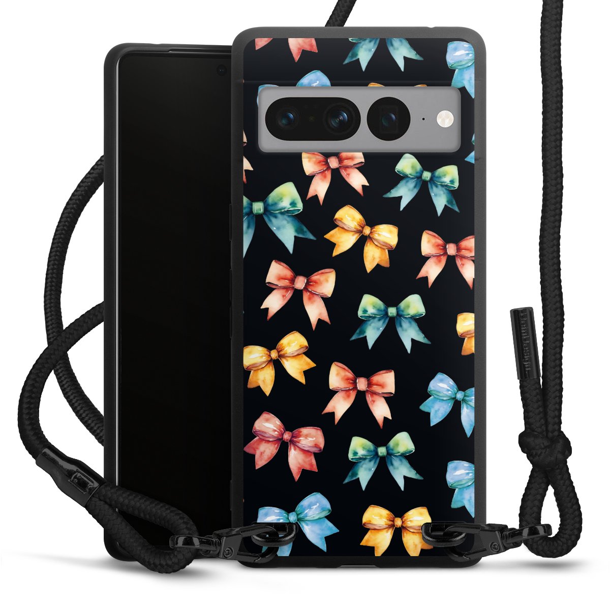 The matt black silicone case is made of flexible TPU (thermoplastic polyurethane) and offers robust protection. The durable, unbreakable material makes the cover flexible and dimensionally stable at the same time. The matte surface makes your design stand out more and is less susceptible to fingerprints and dirt. The stylish trend accessory fits comfortably in the hand and is perfectly complemented by the fabric (polyester) mobile phone strap. The braided fabric strap is approx. 1.70 metres long with a diameter of approx. 0.5 cm. Due to the special knotting technique, the length of the strap can be adjusted by simply pulling it, so that you can adapt it individually to your wishes. The practical case to wear around your neck is available with the fabric strap in black. As a little icing on the cake, we have provided the strap with a chic metal fastener in matt black. The strap is securely fastened to the case with loops made of high-quality genuine leather and press studs. The ends of the fabric strap are covered with metallic end caps and thus protected from fraying.