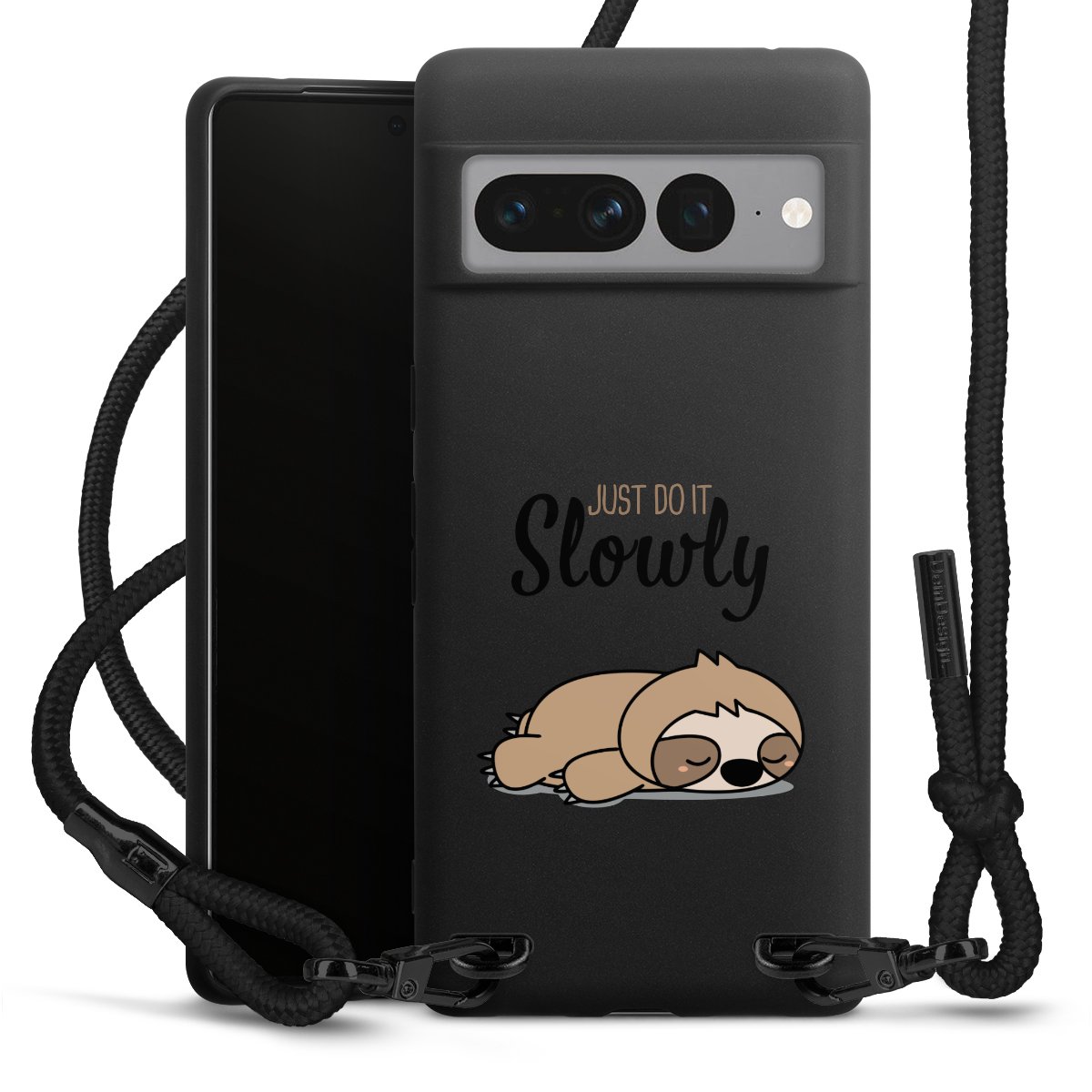 The matt black silicone case is made of flexible TPU (thermoplastic polyurethane) and offers robust protection. The durable, unbreakable material makes the cover flexible and dimensionally stable at the same time. The matte surface makes your design stand out more and is less susceptible to fingerprints and dirt. The stylish trend accessory fits comfortably in the hand and is perfectly complemented by the fabric (polyester) mobile phone strap. The braided fabric strap is approx. 1.70 metres long with a diameter of approx. 0.5 cm. Due to the special knotting technique, the length of the strap can be adjusted by simply pulling it, so that you can adapt it individually to your wishes. The practical case to wear around your neck is available with the fabric strap in black. As a little icing on the cake, we have provided the strap with a chic metal fastener in matt black. The strap is securely fastened to the case with loops made of high-quality genuine leather and press studs. The ends of the fabric strap are covered with metallic end caps and thus protected from fraying.