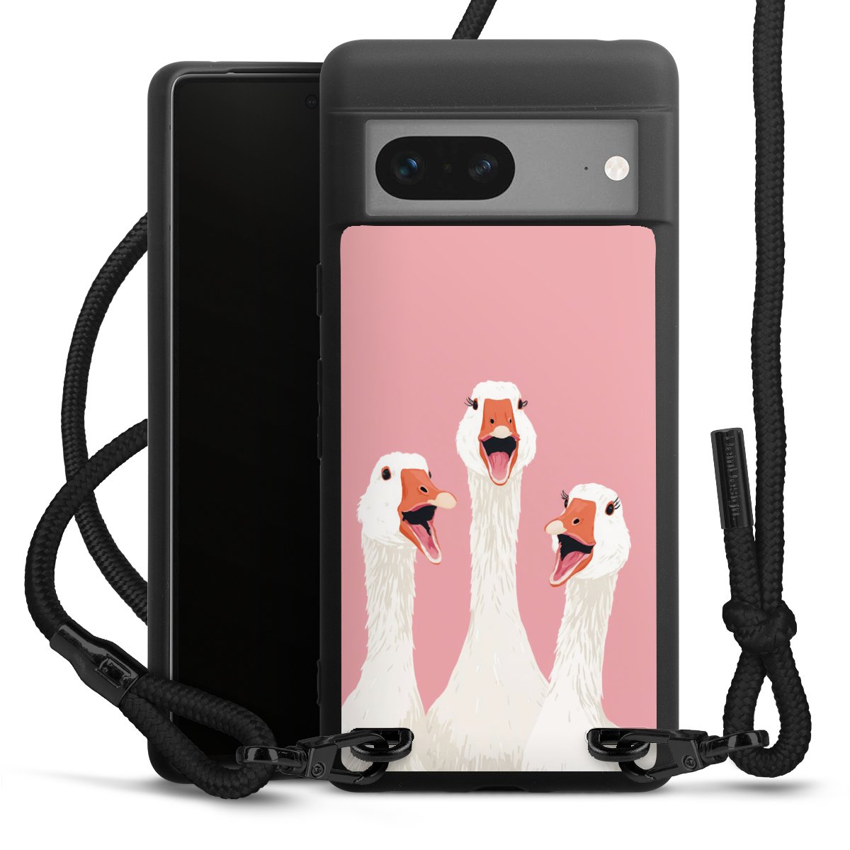 We use the solid direct print process for this phone case, which is why the print area only covers the back and the edge remains unprinted. The case to wear around your neck can be ordered unprinted, fully printed, or partially printed. For your design, either choose one of our exclusive shop motifs or get creative and create your own design, for example with photos and overlays. Design your own personal trend accessory and make an individual statement on the streets!