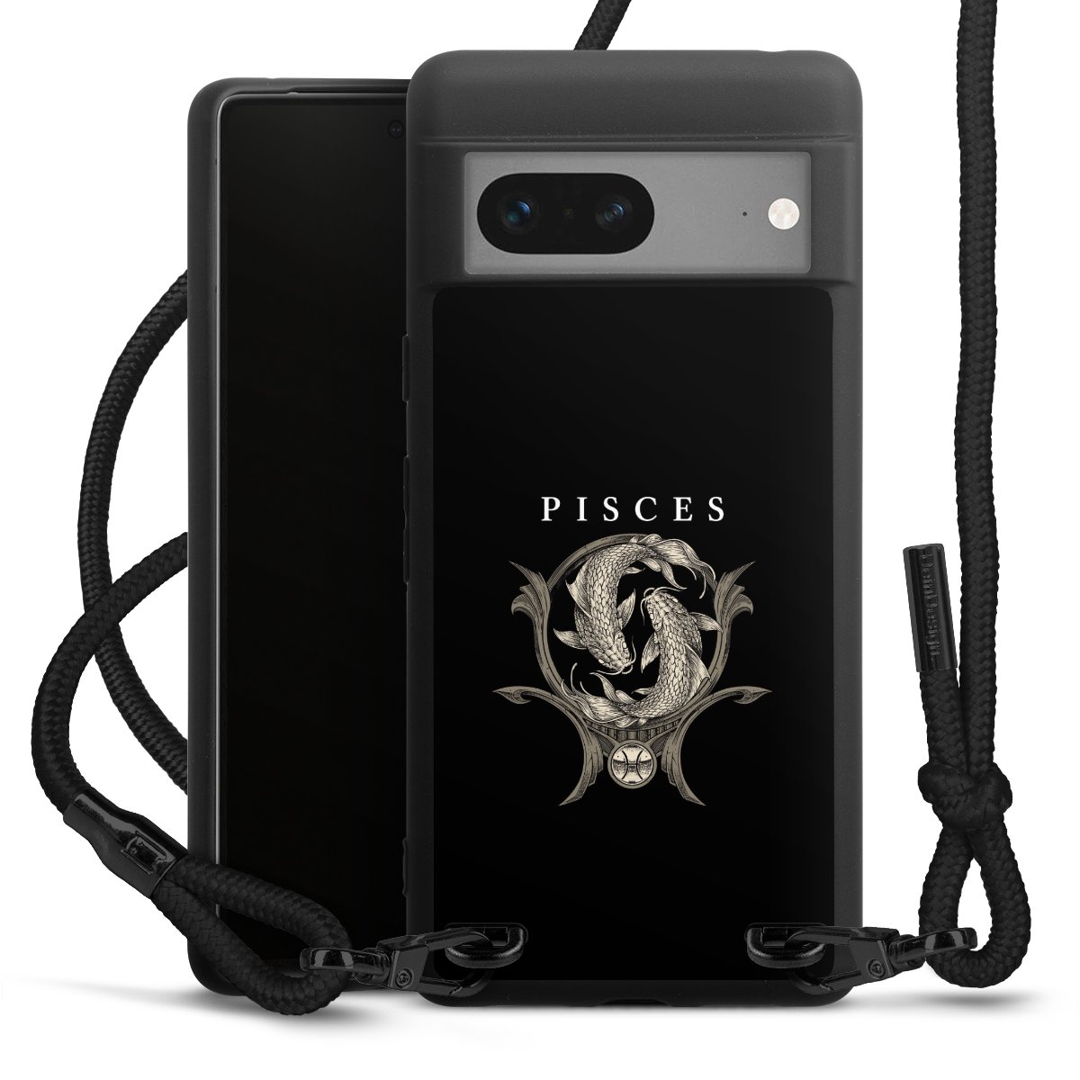 The matt black silicone case is made of flexible TPU (thermoplastic polyurethane) and offers robust protection. The durable, unbreakable material makes the cover flexible and dimensionally stable at the same time. The matte surface makes your design stand out more and is less susceptible to fingerprints and dirt. The stylish trend accessory fits comfortably in the hand and is perfectly complemented by the fabric (polyester) mobile phone strap. The braided fabric strap is approx. 1.70 metres long with a diameter of approx. 0.5 cm. Due to the special knotting technique, the length of the strap can be adjusted by simply pulling it, so that you can adapt it individually to your wishes. The practical case to wear around your neck is available with the fabric strap in black. As a little icing on the cake, we have provided the strap with a chic metal fastener in matt black. The strap is securely fastened to the case with loops made of high-quality genuine leather and press studs. The ends of the fabric strap are covered with metallic end caps and thus protected from fraying.