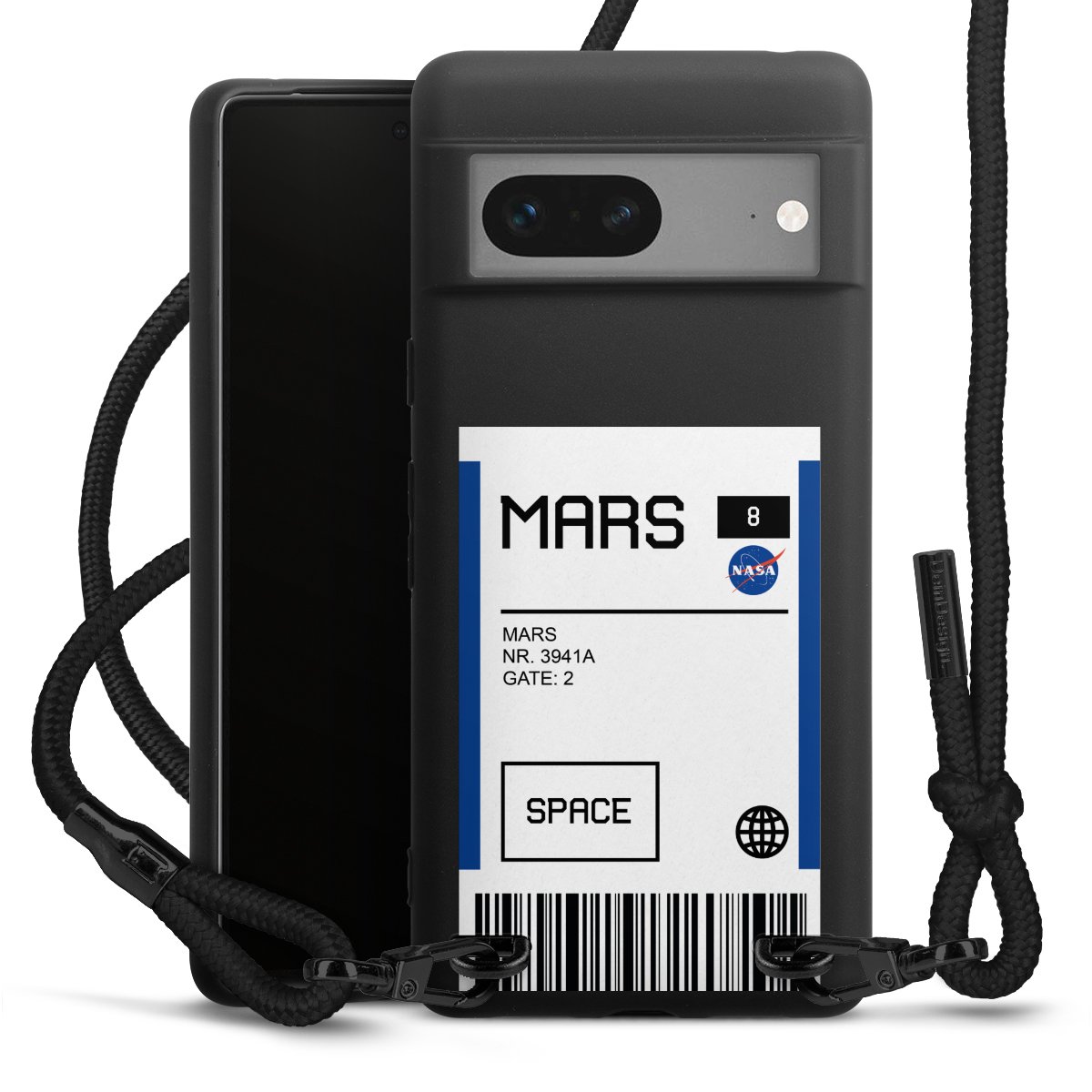 We use the solid direct print process for this phone case, which is why the print area only covers the back and the edge remains unprinted. The case to wear around your neck can be ordered unprinted, fully printed, or partially printed. For your design, either choose one of our exclusive shop motifs or get creative and create your own design, for example with photos and overlays. Design your own personal trend accessory and make an individual statement on the streets!