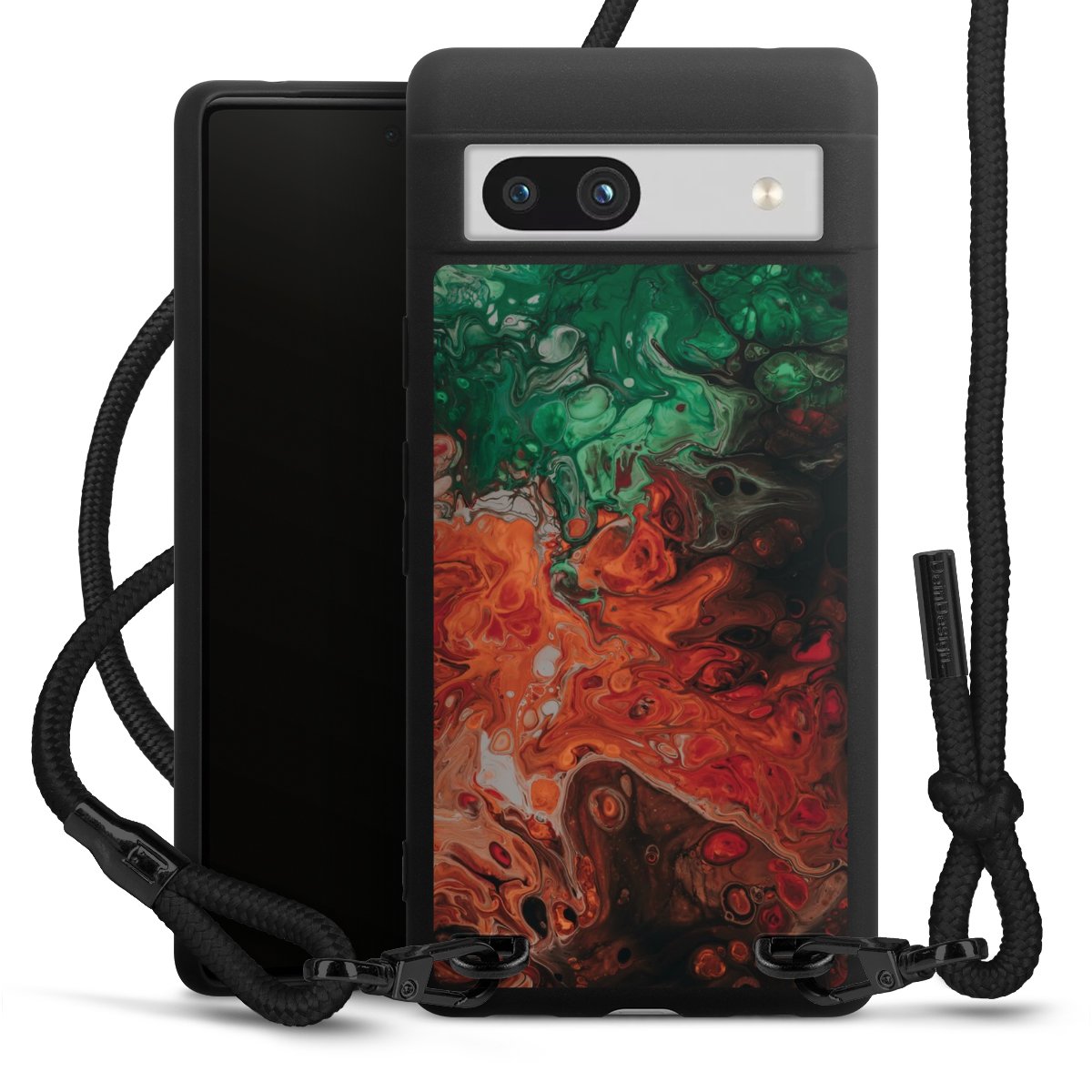 We use the solid direct print process for this phone case, which is why the print area only covers the back and the edge remains unprinted. The case to wear around your neck can be ordered unprinted, fully printed, or partially printed. For your design, either choose one of our exclusive shop motifs or get creative and create your own design, for example with photos and overlays. Design your own personal trend accessory and make an individual statement on the streets!