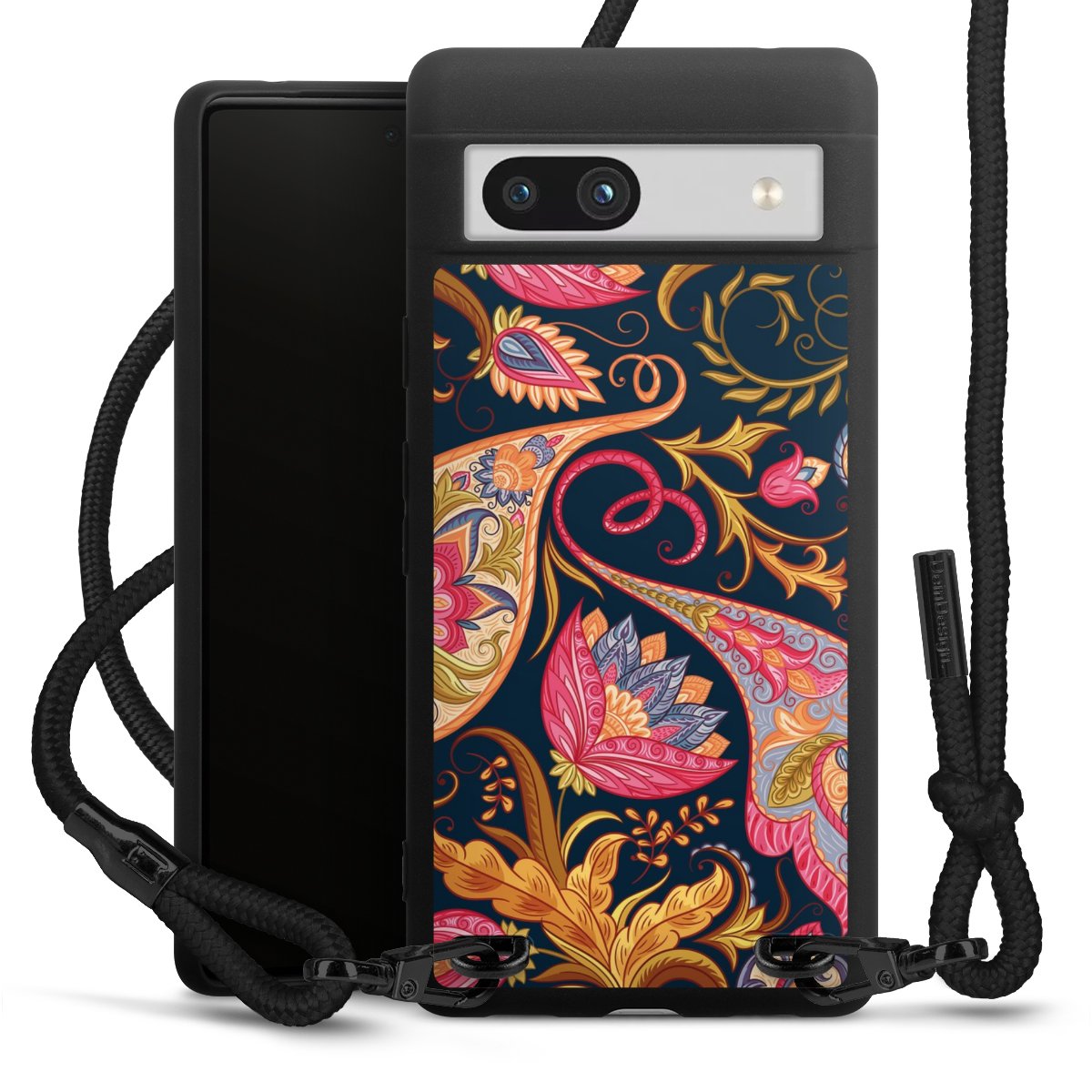 The matt black silicone case is made of flexible TPU (thermoplastic polyurethane) and offers robust protection. The durable, unbreakable material makes the cover flexible and dimensionally stable at the same time. The matte surface makes your design stand out more and is less susceptible to fingerprints and dirt. The stylish trend accessory fits comfortably in the hand and is perfectly complemented by the fabric (polyester) mobile phone strap. The braided fabric strap is approx. 1.70 metres long with a diameter of approx. 0.5 cm. Due to the special knotting technique, the length of the strap can be adjusted by simply pulling it, so that you can adapt it individually to your wishes. The practical case to wear around your neck is available with the fabric strap in black. As a little icing on the cake, we have provided the strap with a chic metal fastener in matt black. The strap is securely fastened to the case with loops made of high-quality genuine leather and press studs. The ends of the fabric strap are covered with metallic end caps and thus protected from fraying.