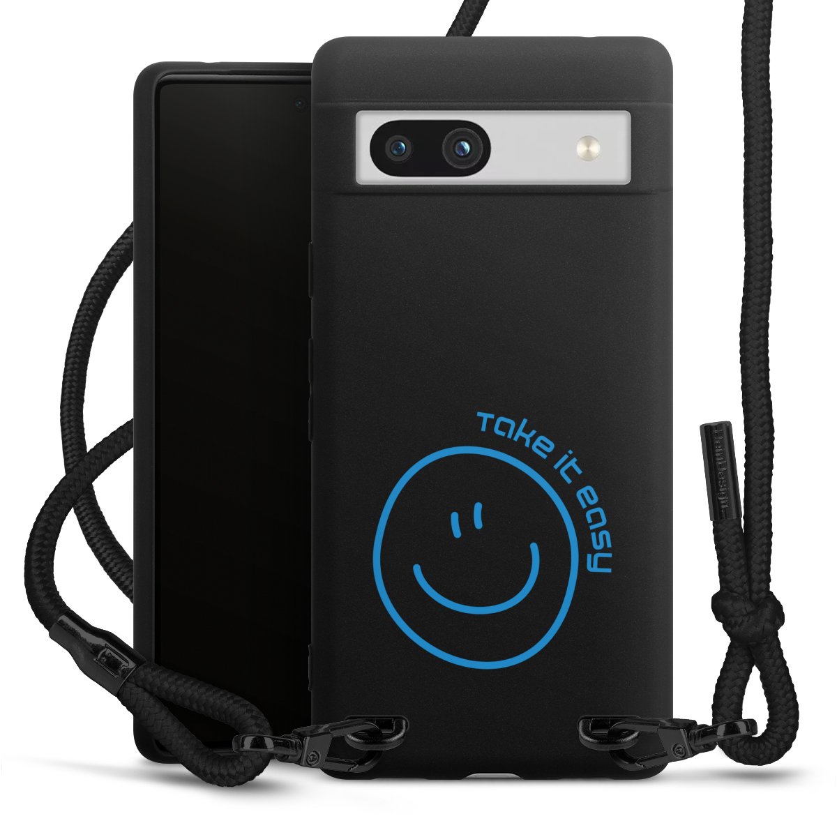 The matt black silicone case is made of flexible TPU (thermoplastic polyurethane) and offers robust protection. The durable, unbreakable material makes the cover flexible and dimensionally stable at the same time. The matte surface makes your design stand out more and is less susceptible to fingerprints and dirt. The stylish trend accessory fits comfortably in the hand and is perfectly complemented by the fabric (polyester) mobile phone strap. The braided fabric strap is approx. 1.70 metres long with a diameter of approx. 0.5 cm. Due to the special knotting technique, the length of the strap can be adjusted by simply pulling it, so that you can adapt it individually to your wishes. The practical case to wear around your neck is available with the fabric strap in black. As a little icing on the cake, we have provided the strap with a chic metal fastener in matt black. The strap is securely fastened to the case with loops made of high-quality genuine leather and press studs. The ends of the fabric strap are covered with metallic end caps and thus protected from fraying.