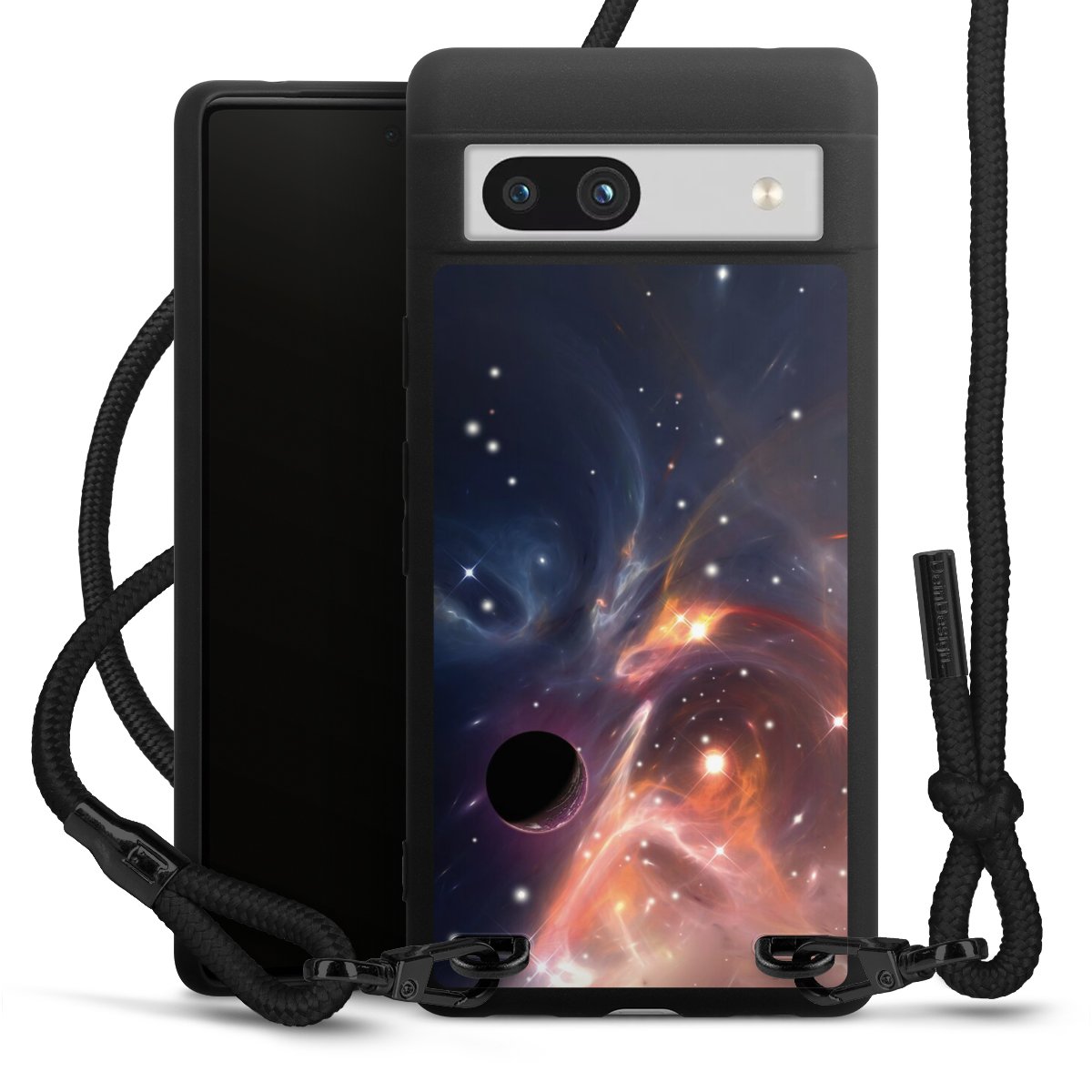 The matt black silicone case is made of flexible TPU (thermoplastic polyurethane) and offers robust protection. The durable, unbreakable material makes the cover flexible and dimensionally stable at the same time. The matte surface makes your design stand out more and is less susceptible to fingerprints and dirt. The stylish trend accessory fits comfortably in the hand and is perfectly complemented by the fabric (polyester) mobile phone strap. The braided fabric strap is approx. 1.70 metres long with a diameter of approx. 0.5 cm. Due to the special knotting technique, the length of the strap can be adjusted by simply pulling it, so that you can adapt it individually to your wishes. The practical case to wear around your neck is available with the fabric strap in black. As a little icing on the cake, we have provided the strap with a chic metal fastener in matt black. The strap is securely fastened to the case with loops made of high-quality genuine leather and press studs. The ends of the fabric strap are covered with metallic end caps and thus protected from fraying.