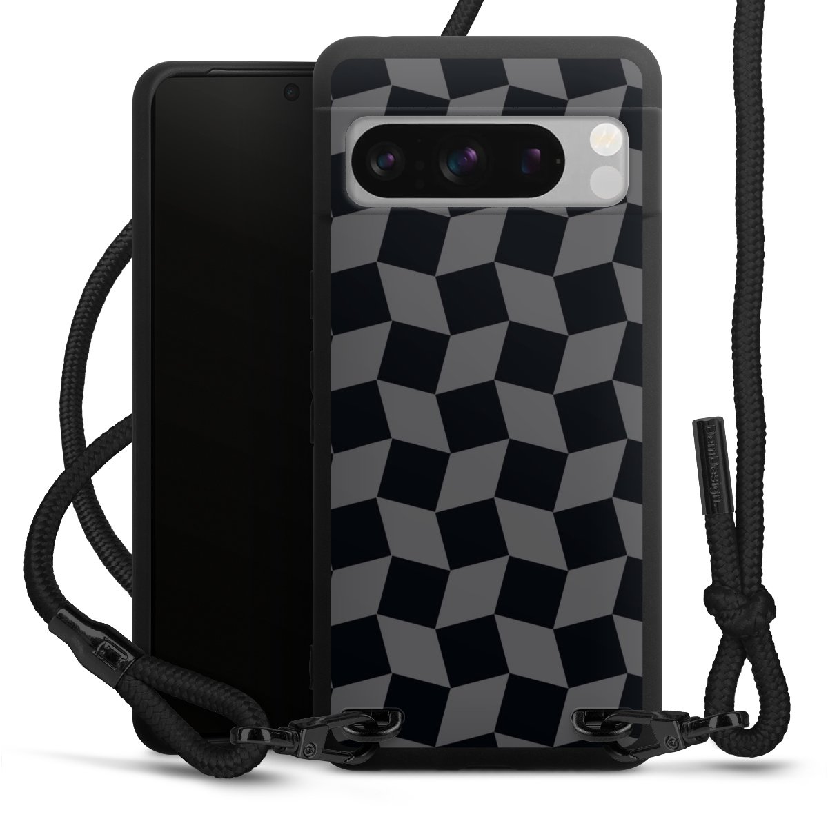 Pure Black: Phone case, fabric strap and metal details in stylish matt black.