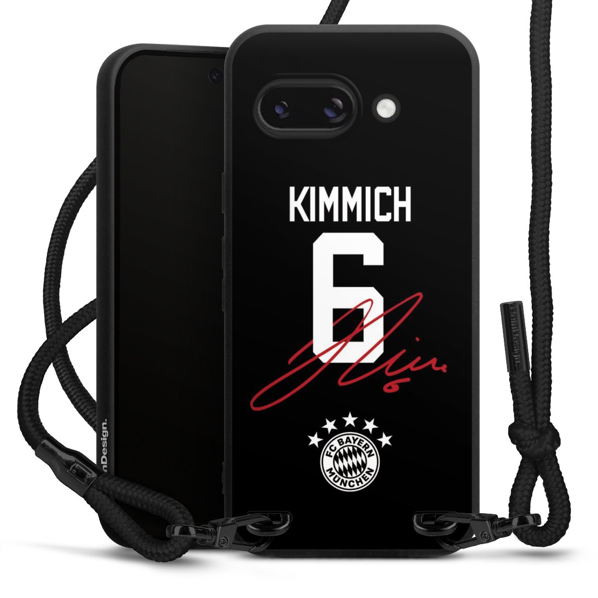The matt black silicone case is made of flexible TPU (thermoplastic polyurethane) and offers robust protection. The durable, unbreakable material makes the cover flexible and dimensionally stable at the same time. The matte surface makes your design stand out more and is less susceptible to fingerprints and dirt. The stylish trend accessory fits comfortably in the hand and is perfectly complemented by the fabric (polyester) mobile phone strap. The braided fabric strap is approx. 1.70 metres long with a diameter of approx. 0.5 cm. Due to the special knotting technique, the length of the strap can be adjusted by simply pulling it, so that you can adapt it individually to your wishes. The practical case to wear around your neck is available with the fabric strap in black. As a little icing on the cake, we have provided the strap with a chic metal fastener in matt black. The strap is securely fastened to the case with loops made of high-quality genuine leather and press studs. The ends of the fabric strap are covered with metallic end caps and thus protected from fraying.