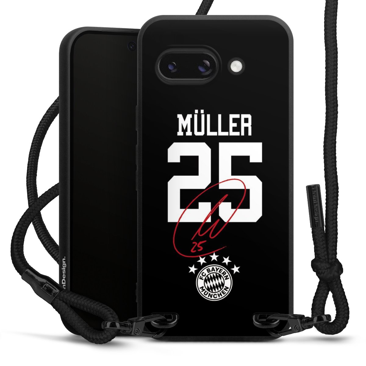 The matt black silicone case is made of flexible TPU (thermoplastic polyurethane) and offers robust protection. The durable, unbreakable material makes the cover flexible and dimensionally stable at the same time. The matte surface makes your design stand out more and is less susceptible to fingerprints and dirt. The stylish trend accessory fits comfortably in the hand and is perfectly complemented by the fabric (polyester) mobile phone strap. The braided fabric strap is approx. 1.70 metres long with a diameter of approx. 0.5 cm. Due to the special knotting technique, the length of the strap can be adjusted by simply pulling it, so that you can adapt it individually to your wishes. The practical case to wear around your neck is available with the fabric strap in black. As a little icing on the cake, we have provided the strap with a chic metal fastener in matt black. The strap is securely fastened to the case with loops made of high-quality genuine leather and press studs. The ends of the fabric strap are covered with metallic end caps and thus protected from fraying.