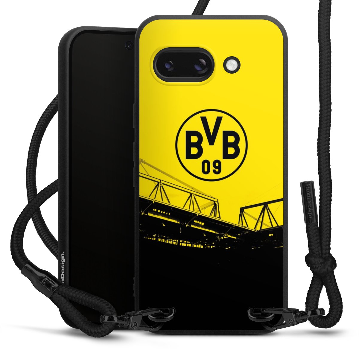 The matt black silicone case is made of flexible TPU (thermoplastic polyurethane) and offers robust protection. The durable, unbreakable material makes the cover flexible and dimensionally stable at the same time. The matte surface makes your design stand out more and is less susceptible to fingerprints and dirt. The stylish trend accessory fits comfortably in the hand and is perfectly complemented by the fabric (polyester) mobile phone strap. The braided fabric strap is approx. 1.70 metres long with a diameter of approx. 0.5 cm. Due to the special knotting technique, the length of the strap can be adjusted by simply pulling it, so that you can adapt it individually to your wishes. The practical case to wear around your neck is available with the fabric strap in black. As a little icing on the cake, we have provided the strap with a chic metal fastener in matt black. The strap is securely fastened to the case with loops made of high-quality genuine leather and press studs. The ends of the fabric strap are covered with metallic end caps and thus protected from fraying.