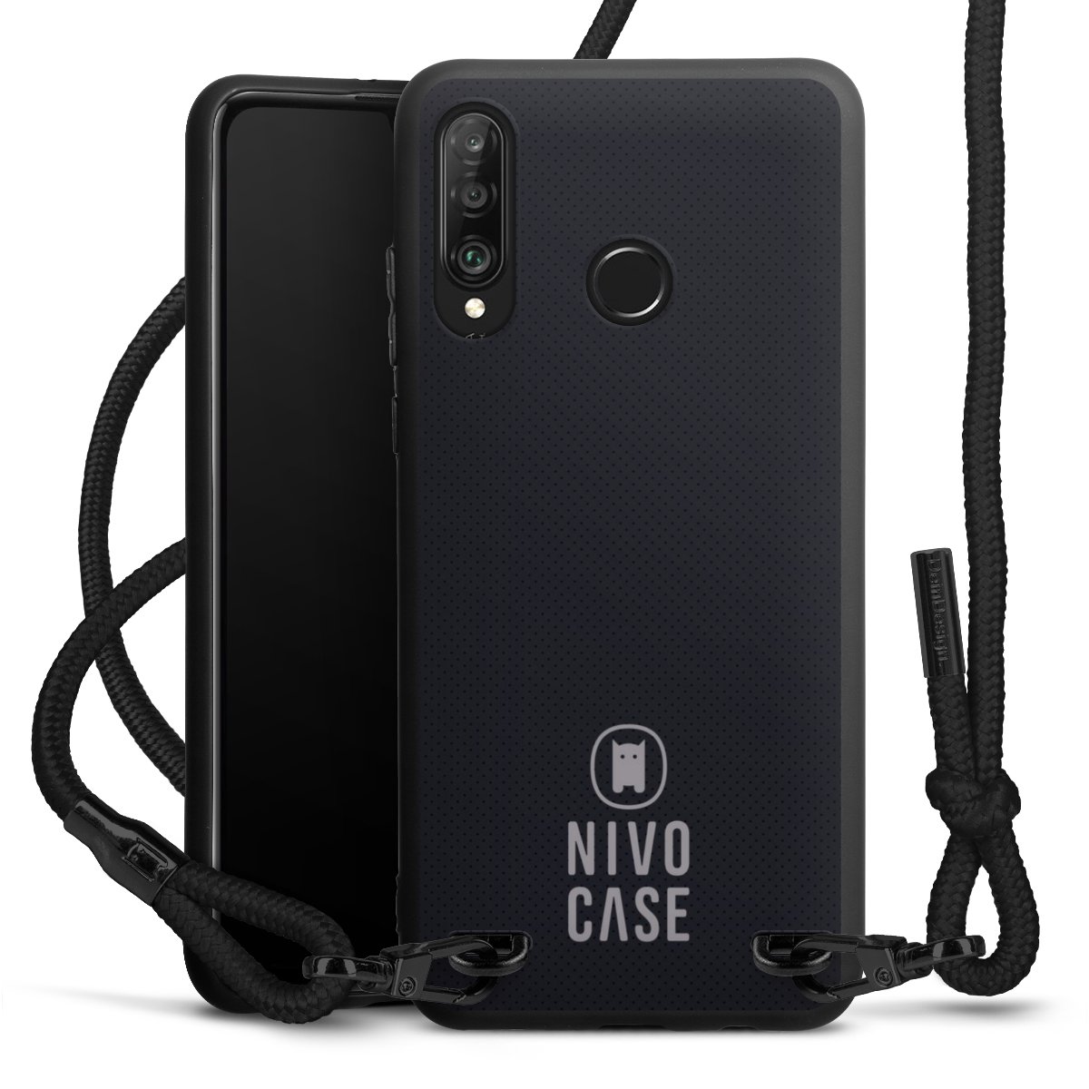 The matt black silicone case is made of flexible TPU (thermoplastic polyurethane) and offers robust protection. The durable, unbreakable material makes the cover flexible and dimensionally stable at the same time. The matte surface makes your design stand out more and is less susceptible to fingerprints and dirt. The stylish trend accessory fits comfortably in the hand and is perfectly complemented by the fabric (polyester) mobile phone strap. The braided fabric strap is approx. 1.70 metres long with a diameter of approx. 0.5 cm. Due to the special knotting technique, the length of the strap can be adjusted by simply pulling it, so that you can adapt it individually to your wishes. The practical case to wear around your neck is available with the fabric strap in black. As a little icing on the cake, we have provided the strap with a chic metal fastener in matt black. The strap is securely fastened to the case with loops made of high-quality genuine leather and press studs. The ends of the fabric strap are covered with metallic end caps and thus protected from fraying.