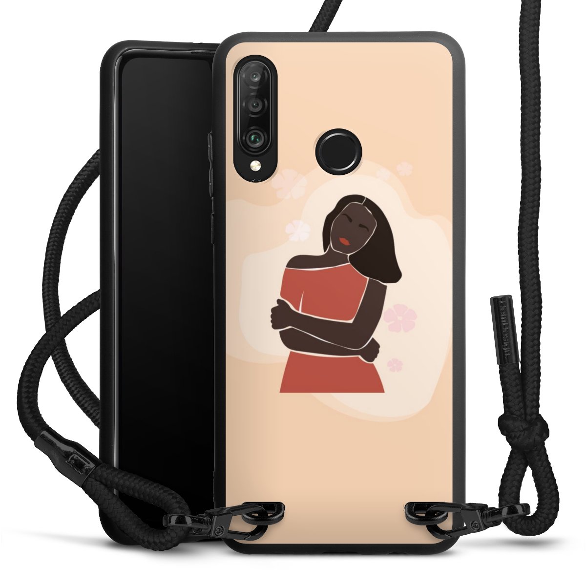 The matt black silicone case is made of flexible TPU (thermoplastic polyurethane) and offers robust protection. The durable, unbreakable material makes the cover flexible and dimensionally stable at the same time. The matte surface makes your design stand out more and is less susceptible to fingerprints and dirt. The stylish trend accessory fits comfortably in the hand and is perfectly complemented by the fabric (polyester) mobile phone strap. The braided fabric strap is approx. 1.70 metres long with a diameter of approx. 0.5 cm. Due to the special knotting technique, the length of the strap can be adjusted by simply pulling it, so that you can adapt it individually to your wishes. The practical case to wear around your neck is available with the fabric strap in black. As a little icing on the cake, we have provided the strap with a chic metal fastener in matt black. The strap is securely fastened to the case with loops made of high-quality genuine leather and press studs. The ends of the fabric strap are covered with metallic end caps and thus protected from fraying.