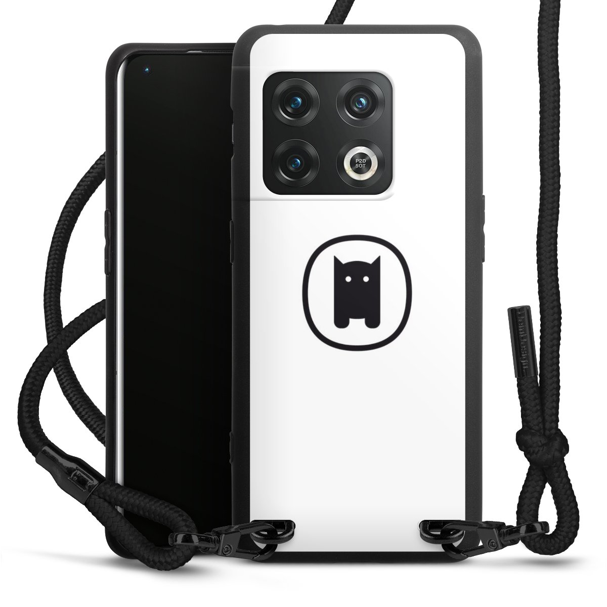 The matt black silicone case is made of flexible TPU (thermoplastic polyurethane) and offers robust protection. The durable, unbreakable material makes the cover flexible and dimensionally stable at the same time. The matte surface makes your design stand out more and is less susceptible to fingerprints and dirt. The stylish trend accessory fits comfortably in the hand and is perfectly complemented by the fabric (polyester) mobile phone strap. The braided fabric strap is approx. 1.70 metres long with a diameter of approx. 0.5 cm. Due to the special knotting technique, the length of the strap can be adjusted by simply pulling it, so that you can adapt it individually to your wishes. The practical case to wear around your neck is available with the fabric strap in black. As a little icing on the cake, we have provided the strap with a chic metal fastener in matt black. The strap is securely fastened to the case with loops made of high-quality genuine leather and press studs. The ends of the fabric strap are covered with metallic end caps and thus protected from fraying.